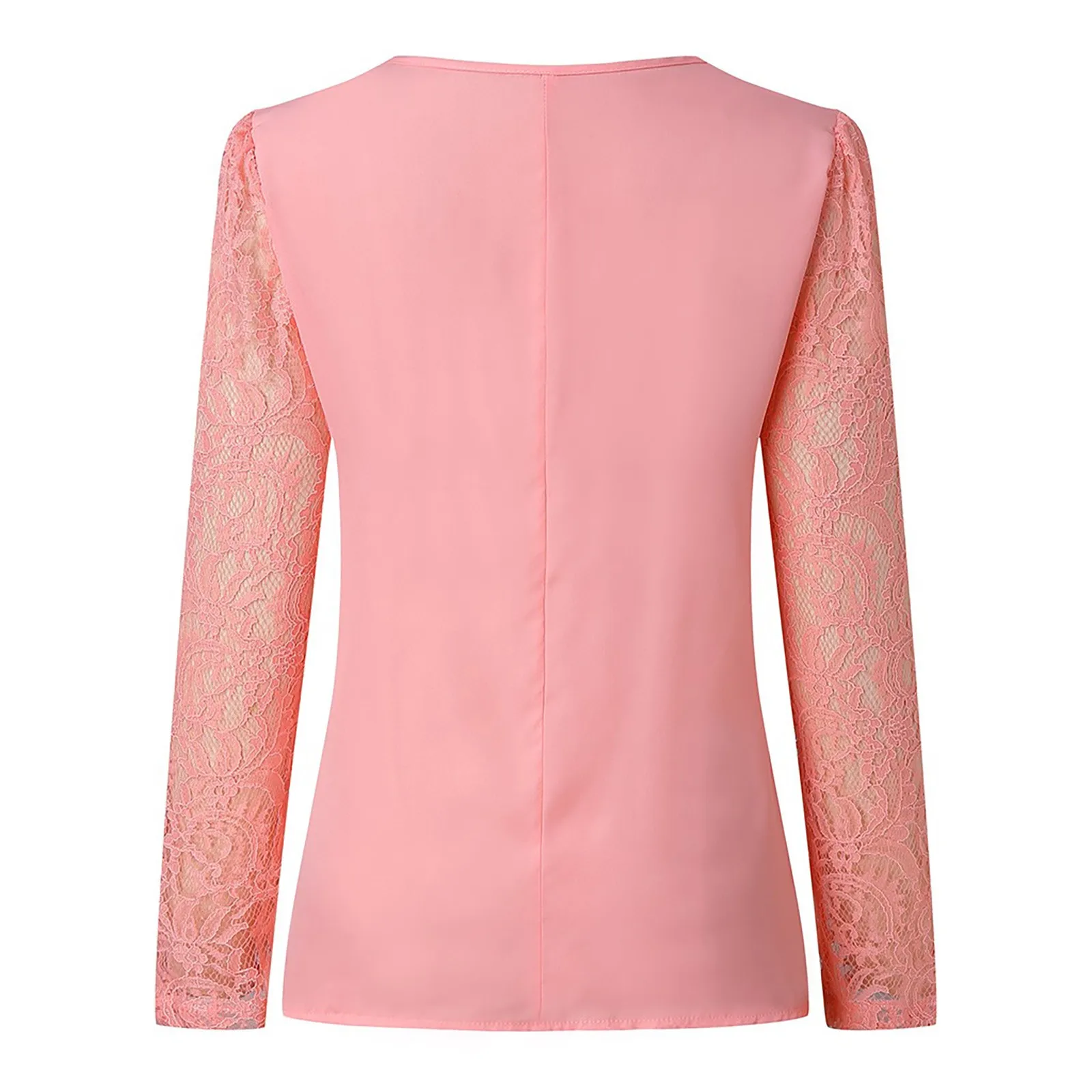 Блузка женская кружевная с длинным рукавом, V-образным вырезом