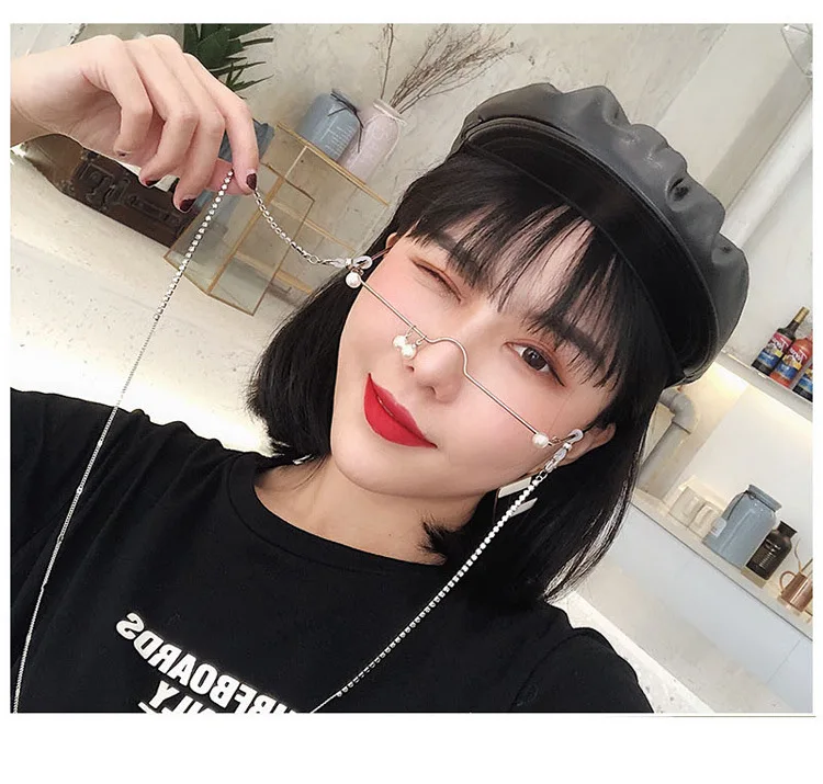 Очки Женские винтажные без линз, модная полуоправа с жемчужной цепо...