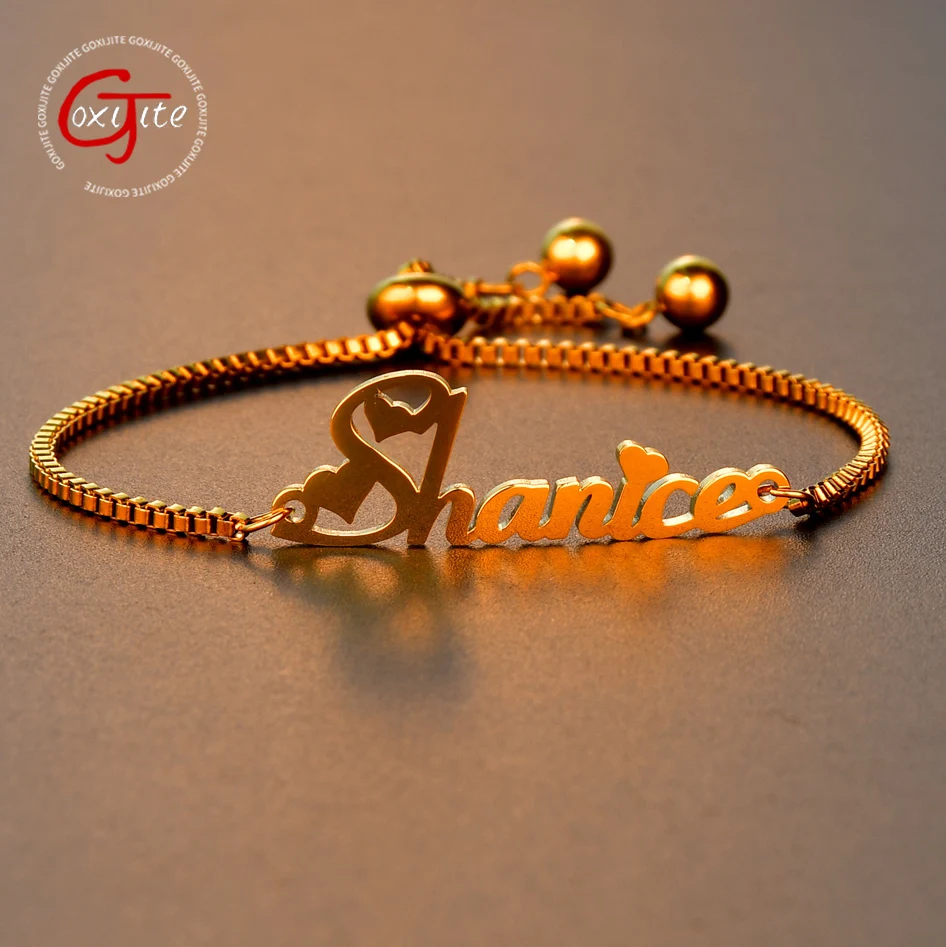 Индивидуальный именной браслет Goxijite для женщин, ювелирные изделия для маленьких девочек, регулируемые браслеты-цепочки из нержавеющей стали золотого цвета на заказ