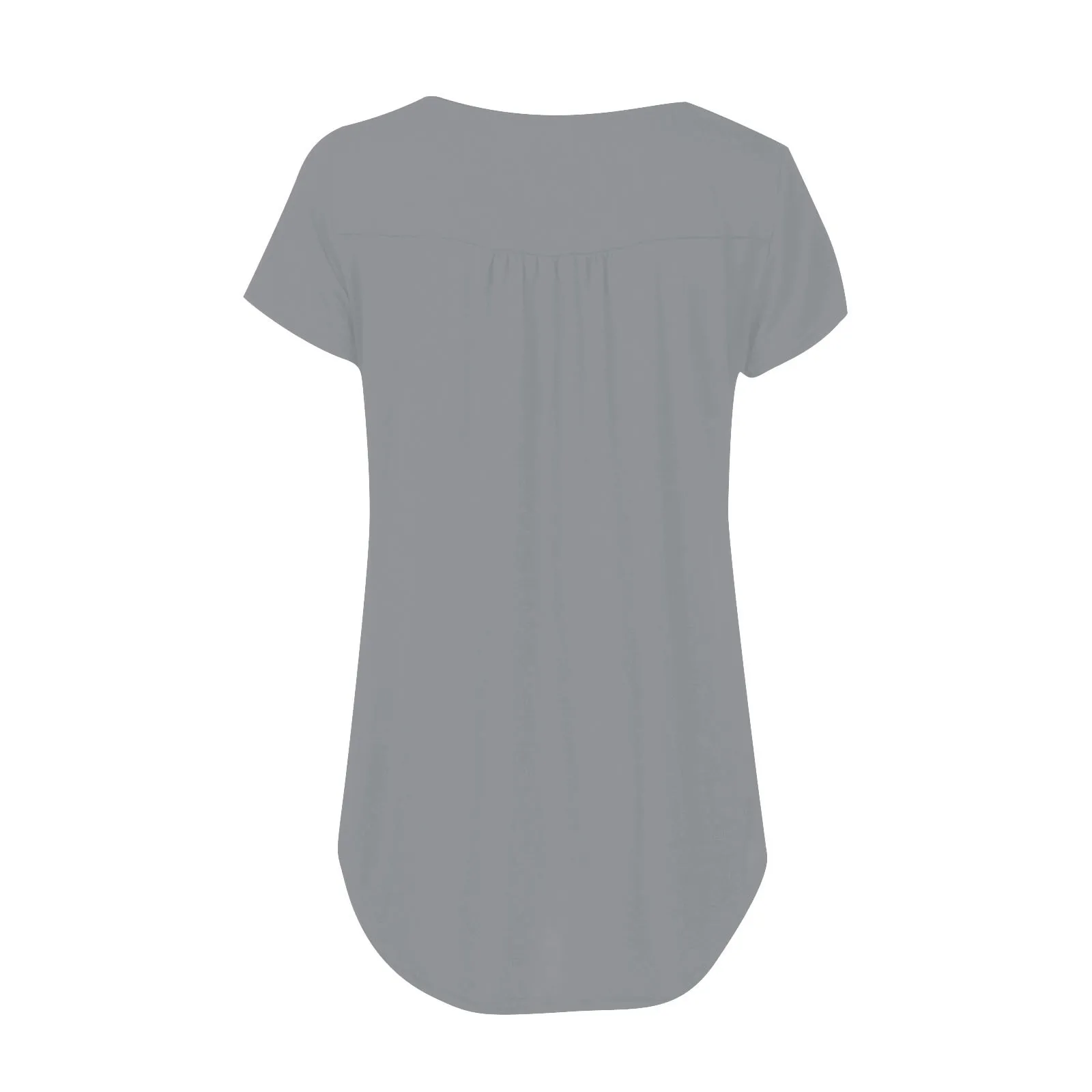 Женская однотонная плиссированная туника с v-образным вырезом и коротким рукавом