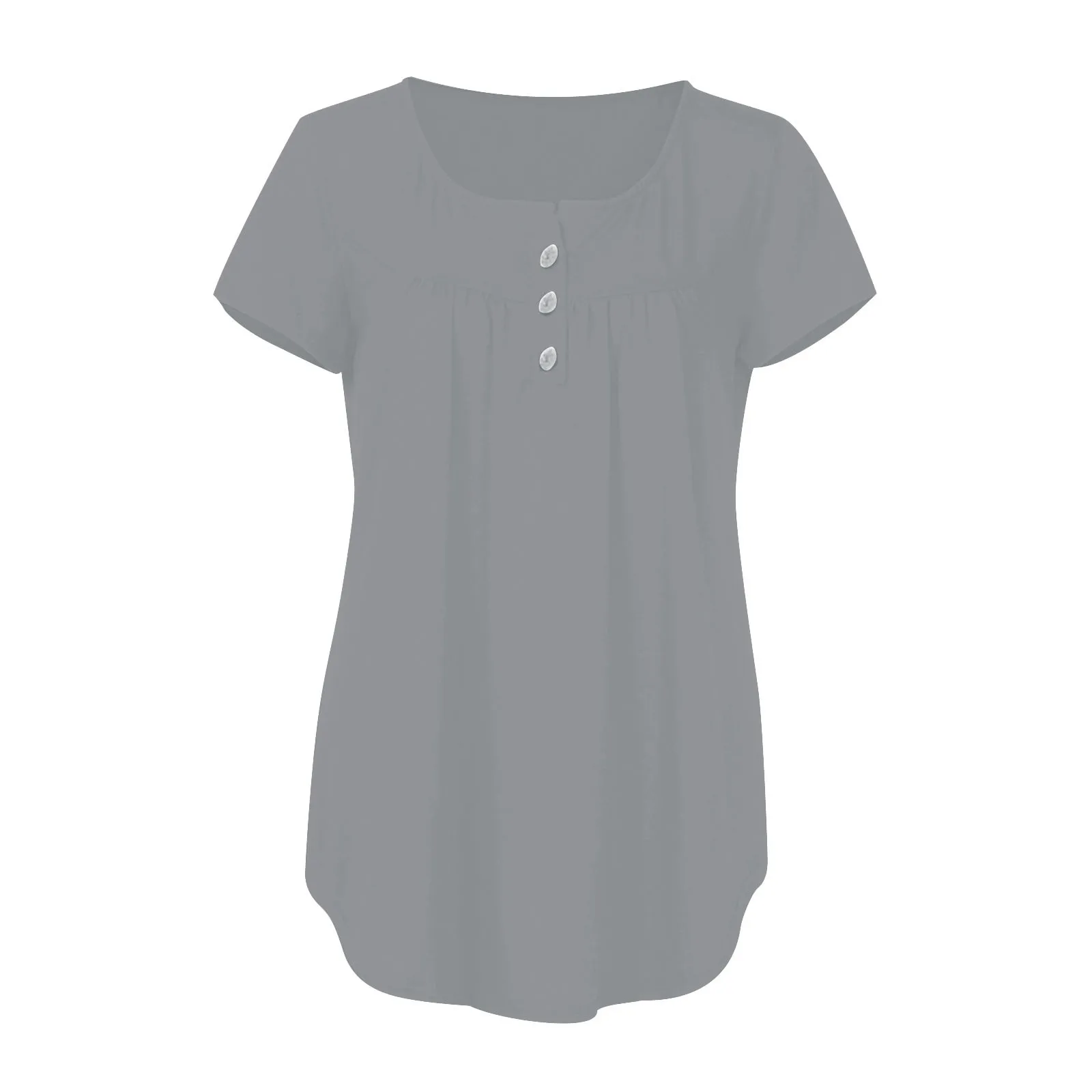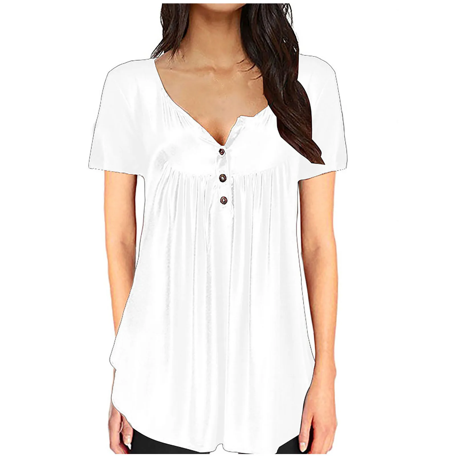 Размера плюс женская одежда, комплект летней одежды для семьи, одежда для женщин, v-образный вырез, Однотонная футболка с короткими рукавами со складками рюшами туника с пуговицами женская одежда # g35