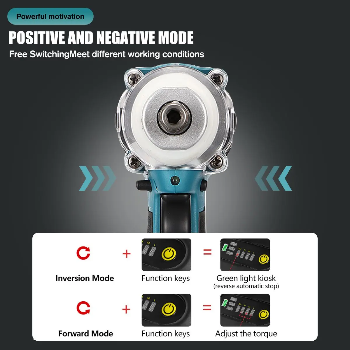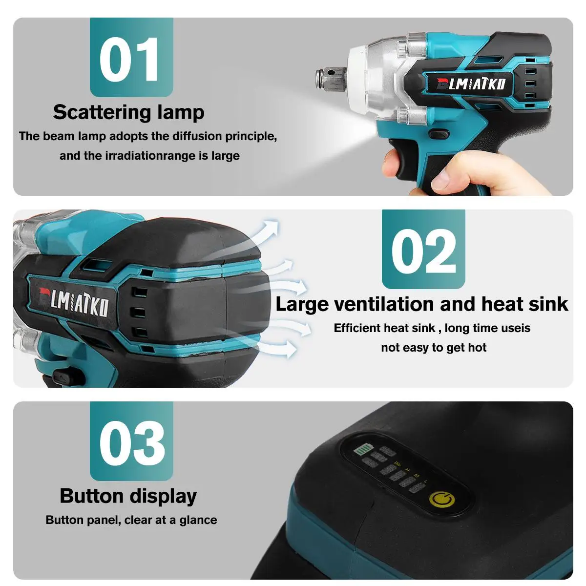 1000N.M 388V бесщеточный ударный ключ беспроводной 1/2, 1/4 розетка Электрический гаечный ключ электроинструмент