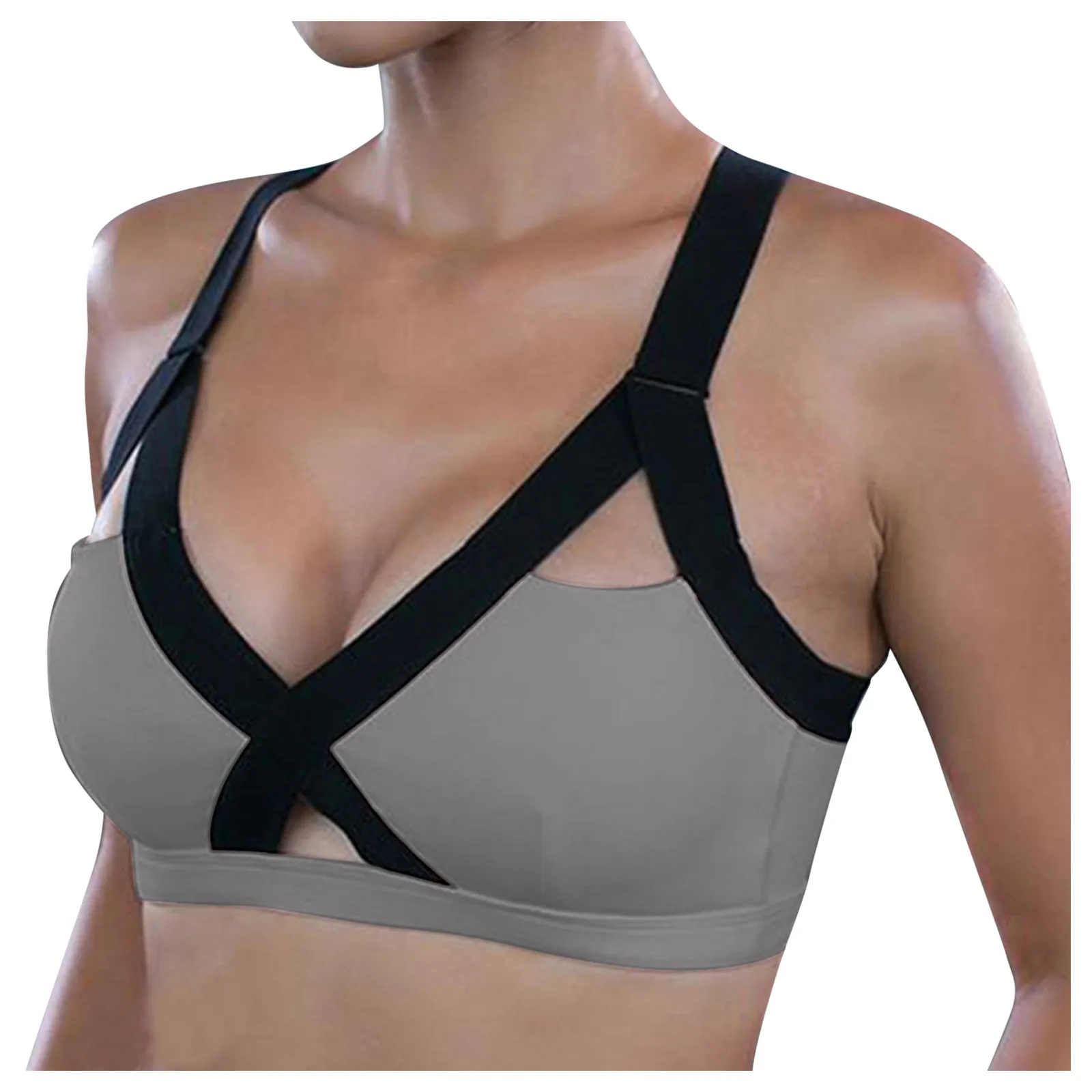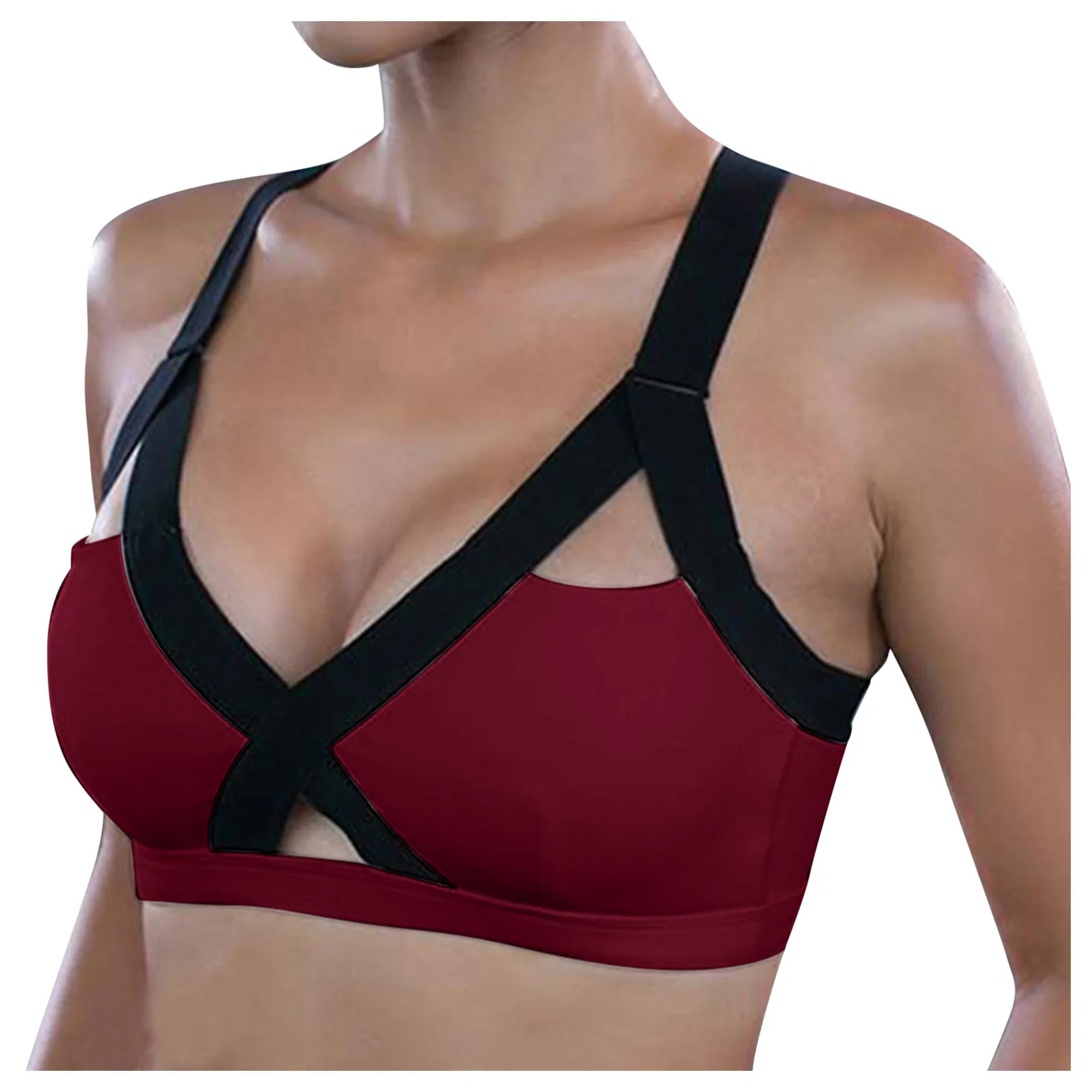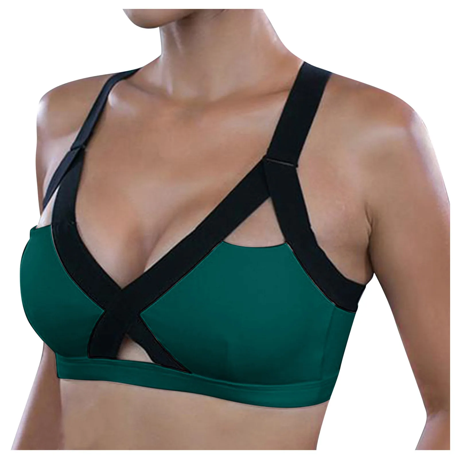 Женский однотонный спортивный бюстгальтер с кружевом спереди и поперечной стороной