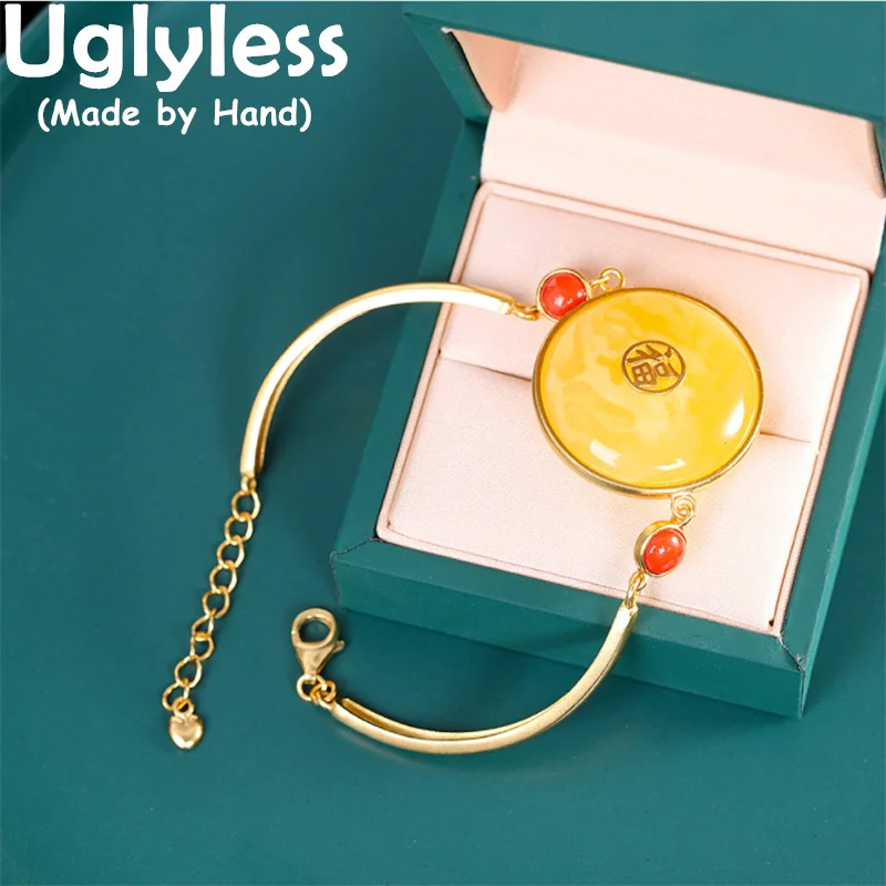 Uglyless Роскошный натуральный куриный масла Янтарь из воска Браслеты для женские большие размеры мира кнопки драгоценный камень Браслеты 925 Серебро Драгоценные Камни