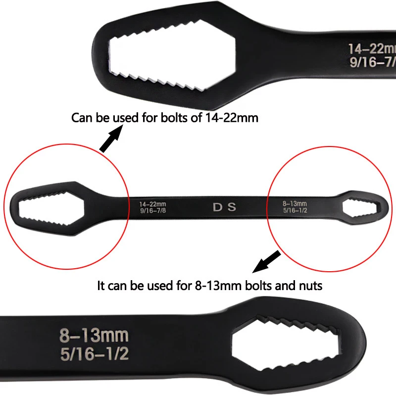 Особенности:1. Многофункциональный универсальный гаечный ключ: самозатягивающийся универсальный гаечный ключ подходит для разборки винтов различных спецификаций.2. Высококачественный материал: гаечный ключ изготовлен из высококачественной CR-V кованой стали с высокой твердостью и повышенной долговечностью. Он может выдерживать использование и работать гораздо больше лет.3. Диапазон двойных торцевых гаечных ключей: хромированная полировка, стандартная 5/16-7/8 дюймов и метрические 8-22 мм гайки и болты.4. Универсальный дизайн гаечного ключа: уникальный ультра-длинный дизайн может увеличить крутящий момент, лучше использовать Принцип рычага, более трудоемкий.5. Широкое применение: Этот универсальный ключ идеально подходит для ремонта дома, строительства, столярных работ, автомобилей, велосипедов, мотоциклов и домашнего обслуживания.Примечание:Фактические цвета могут отличаться от цвета изображения из-за настроек компьютера.Возможны незначительные отклонения из-за ручного измерения.
