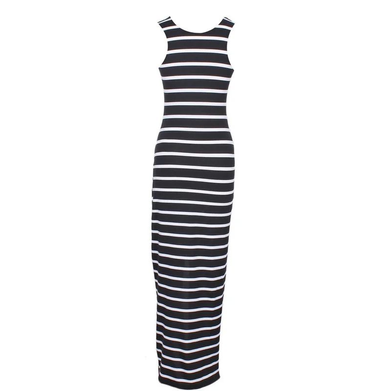 Женское платье в полоску без рукавов, асимметричный разрез, пляжная юбка для отдыха и отдыха, модное Летнее Длинное Платье-шезлонг