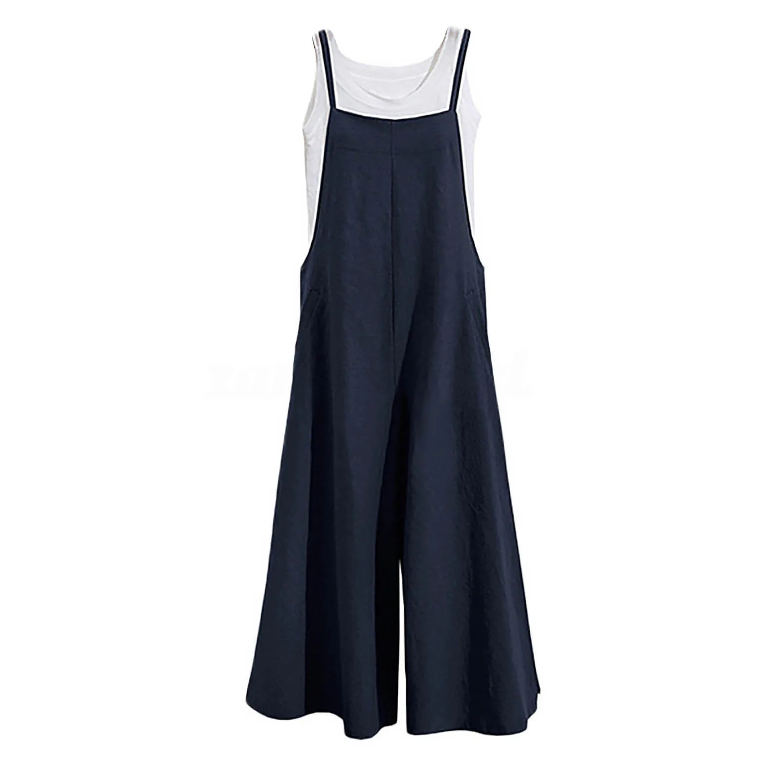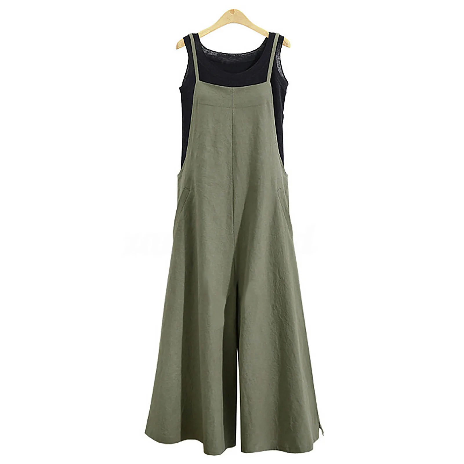 Женские туфли с ремешком Комбинезон Свободного Покроя Лето Повседневные широкие брюки с широкими штанинами сплошной комбинезон широкие брюки на подтяжках без рукавов Свободные Комбинезоны для женщин
