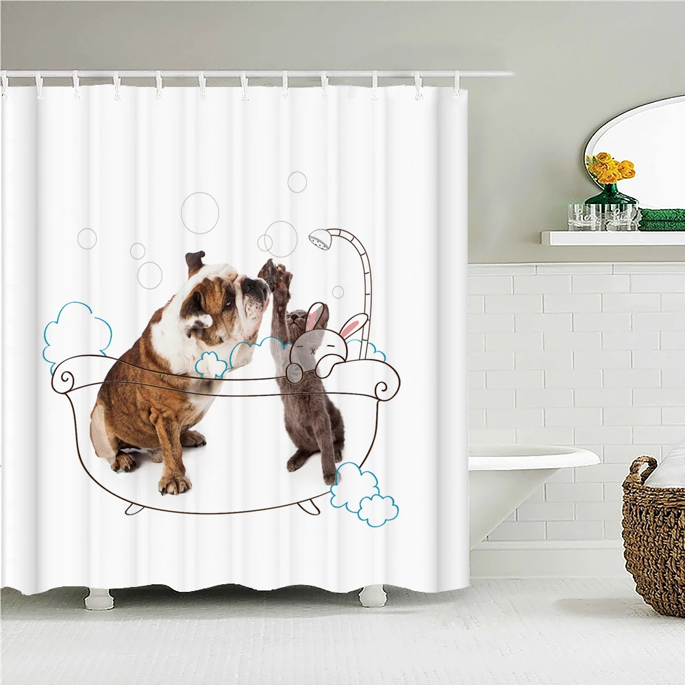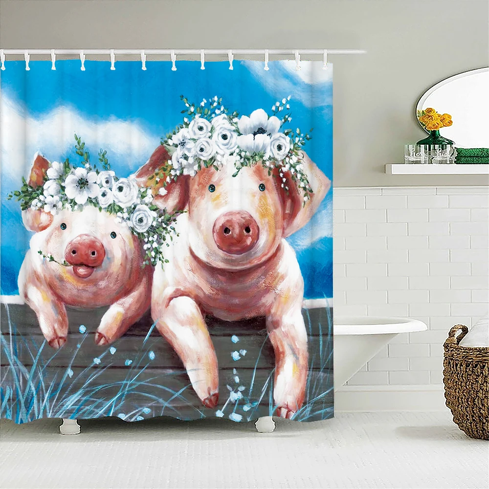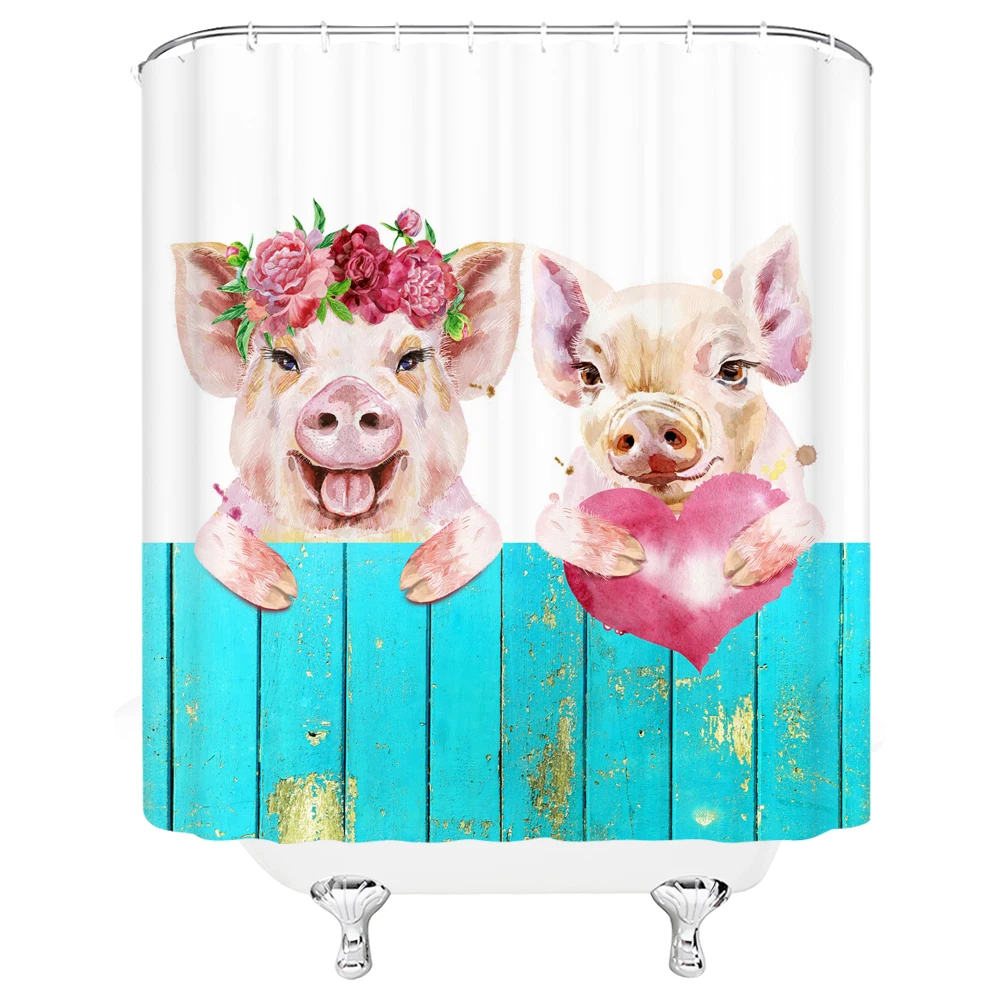 Водонепроницаемая занавеска для душа, забавный рисунок свиньи, занавеска из полиэстера для ванной комнаты, милый мультяшный декор, с крючками, экран для ванной