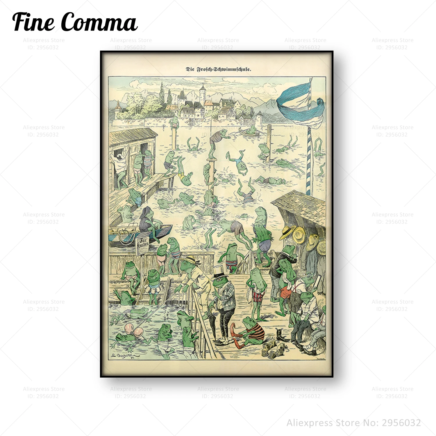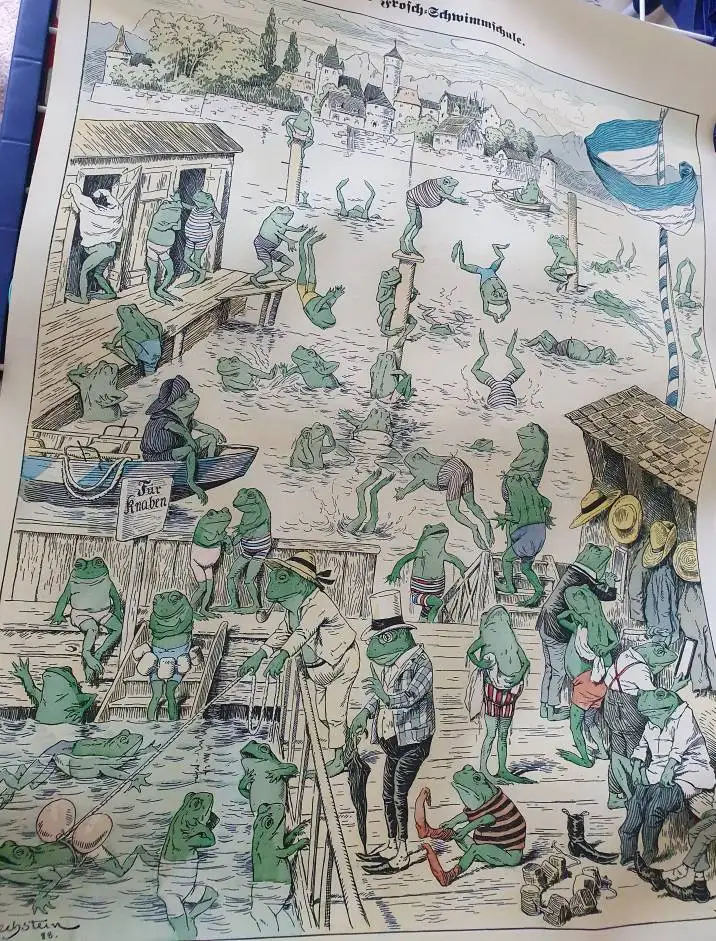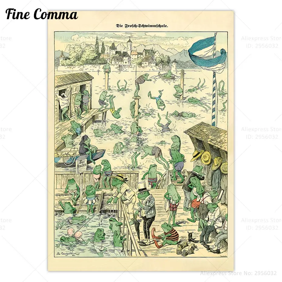 Винтажный постер с лягушкой для плавания, школьная сказка, картина, античное животное, настенное искусство, холст, украшение для дома, Картина на холсте