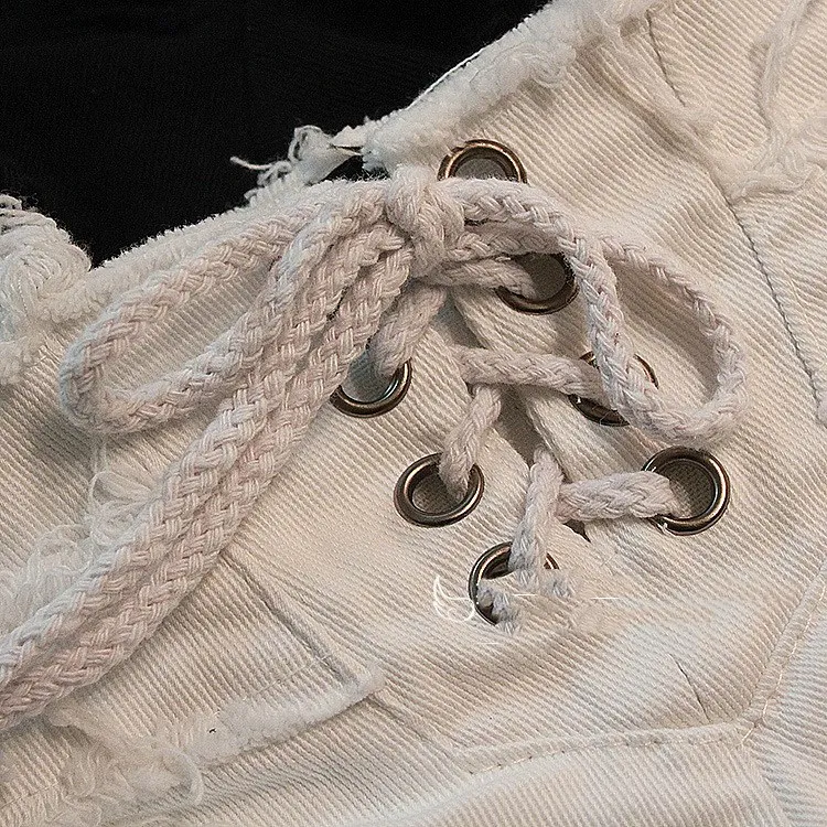 Женские джинсовые шорты с заниженной талией, черные и белые сексуальные мини-шорты с вырезами и завязками на молнии, новинка 2021