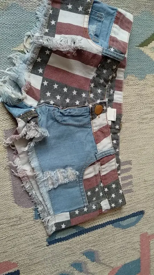 Женские рваные джинсовые шорты с низкой посадкой и принтом в виде американского флага, летние мини-шорты, 2021