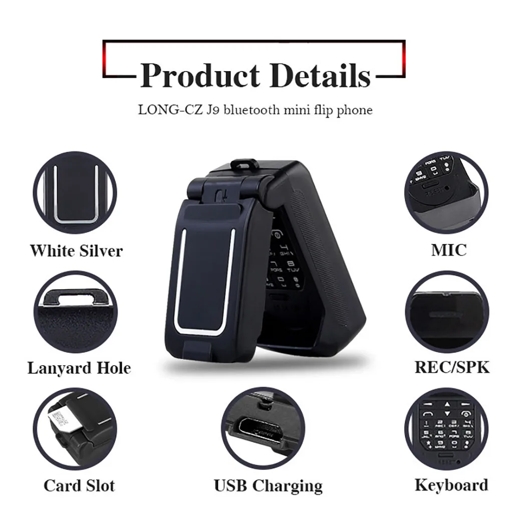 Мини флип мобильный телефон OLED J9 0,66 ”самый маленький мобильный телефон беспроводной Bluetooth