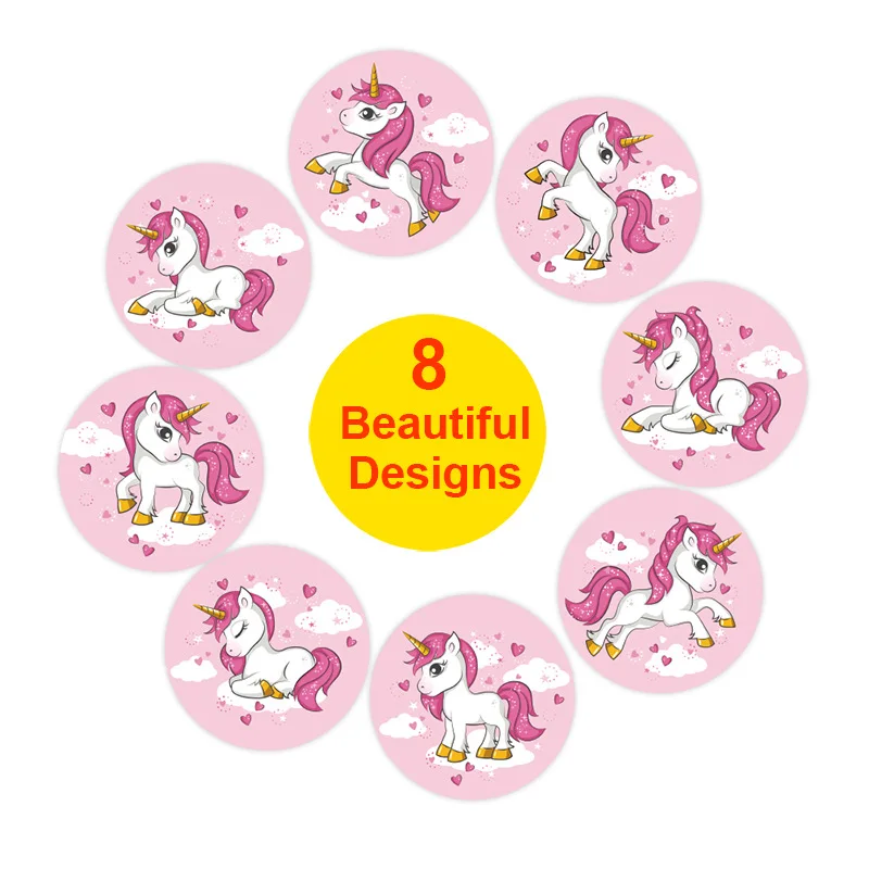 Милый Розовый Единорог наклейки в виде мультяшных животных День Рож...
