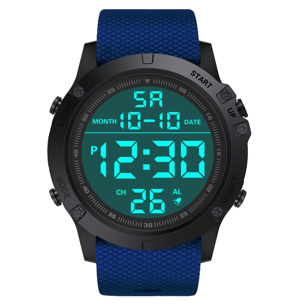 Многофункциональные спортивные мужские часы, Классические наручные часы с секундомером и электронной светодиодной подсветкой, водонепроницаемые цифровые часы на глубину 50 м для улицыВыбор материалов: высококачественный ремешок для часов из полиуретана, высококачественный чехол для часов из поликарбоната, зеркальная поверхность из прозрачного полимерного материала, нижняя крышка из нержавеющей стали, Пряжка из нержавеющей сталиВодонепроницаемость до 50 м: Не стесняйтесь носить часы, когда промокаете под дождем, принимаете душ или моете руки. Но, пожалуйста, не нажимайте кнопки под водой. Также избегайте использования при экстремальной горячей или холодной температуреМногофункциональность: отображение времени, секундомер, светильник, отображение даты, отображение недели, будильник с таймером, 12/24 часов, водонепроницаемый, ударопрочный,Модный стиль, многофункциональный дизайн, изысканная работа, чтобы не пропустить часы, стоит того, чтобы получить их и лучший выбор для подарков