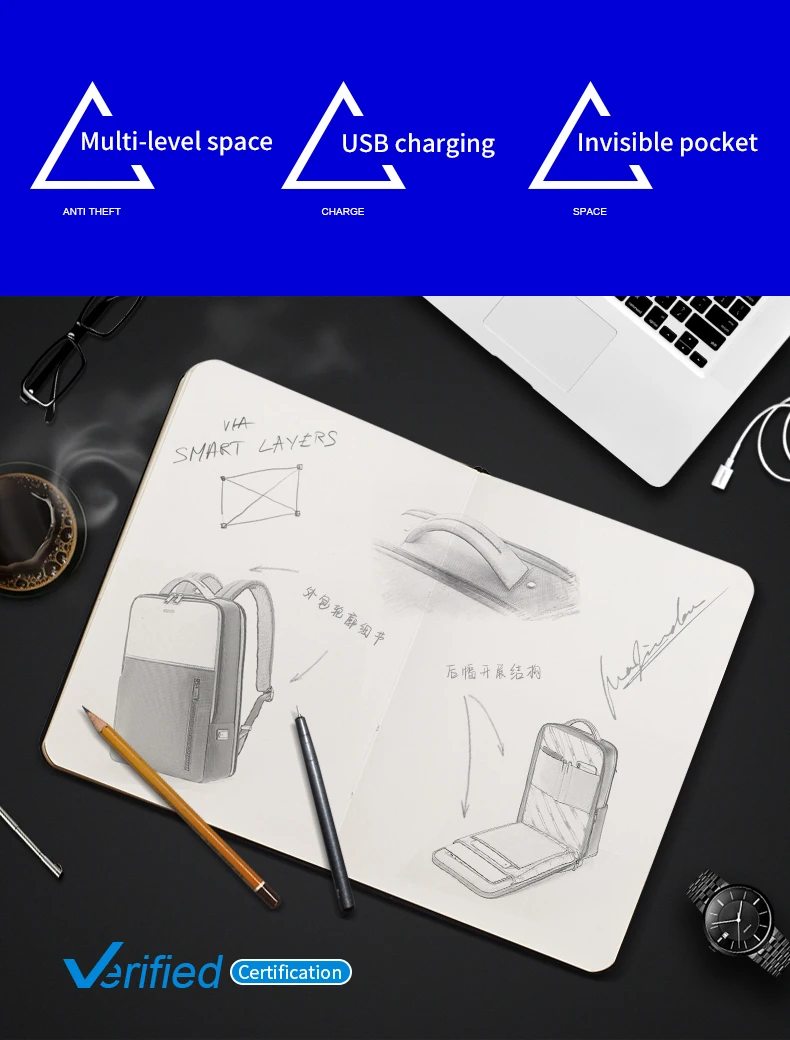 BOPAI мужской рюкзак водонепроницаемый 15,6-дюймовый компьютер USB зарядка противоугонные многофункциональные стильные школьные сумки для подростков путешествия