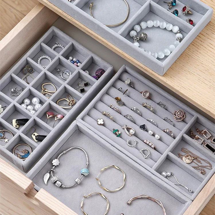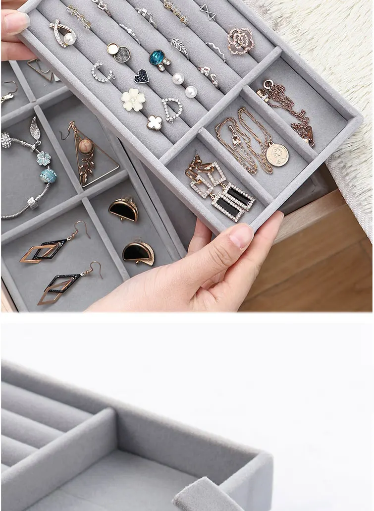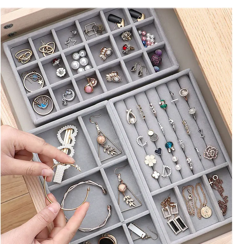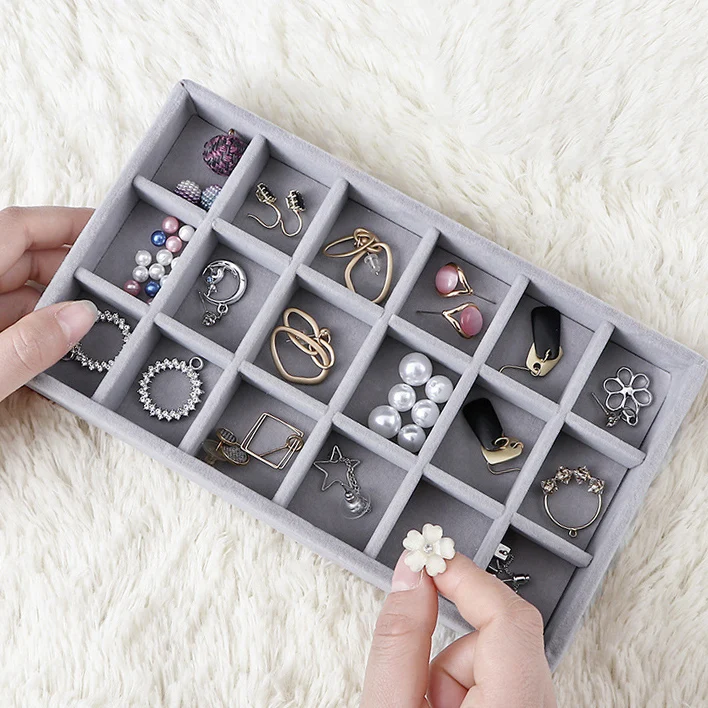Бархатный лоток для хранения ювелирных украшений, подставка для ювелирных изделий, подставка для хранения серег, цепочек, колец, ящик-витрина, органайзер для ювелирных украшений
