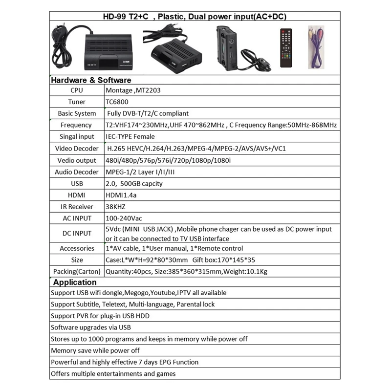 DVB HD-99 T2 Бесплатная цифровой ТВ Box 1080P с кабельным ресивером...