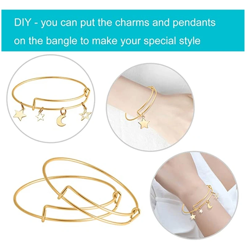 60 штук расширяемый Браслеты Регулируемый провод Браслеты, Нержавеющаясталь пустой браслеты для бижутерии, материал для рукоделия