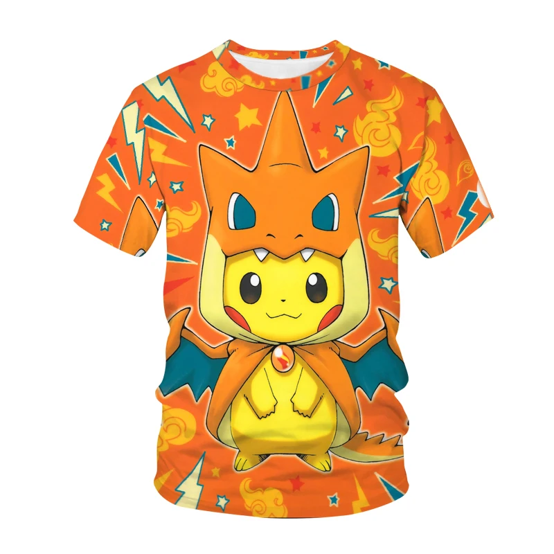 Футболка с покемоном Пикачу для мальчиков и девочек аниме Harajuku Спортивная модная мультяшная в стиле хип-хоп Новинка 2021