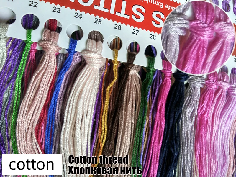 Экологичный хлопокВыберите экологическую линию из полиэстера и хлопка для защиты окружающей среды,Защита окружающей среды и долговечность; Полный цвет на производственной линии DMC, красочный;Линия на поверхности короткого волокна, делает более полными вышитые работы!
