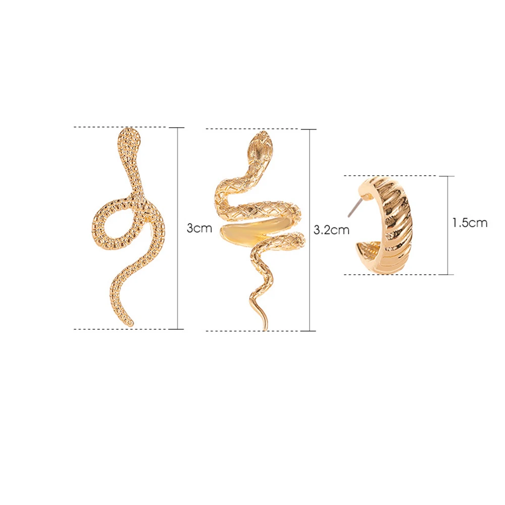 Серьги-Змеи в стиле ретро, крутой ветер, модный Комплект из трех пр...