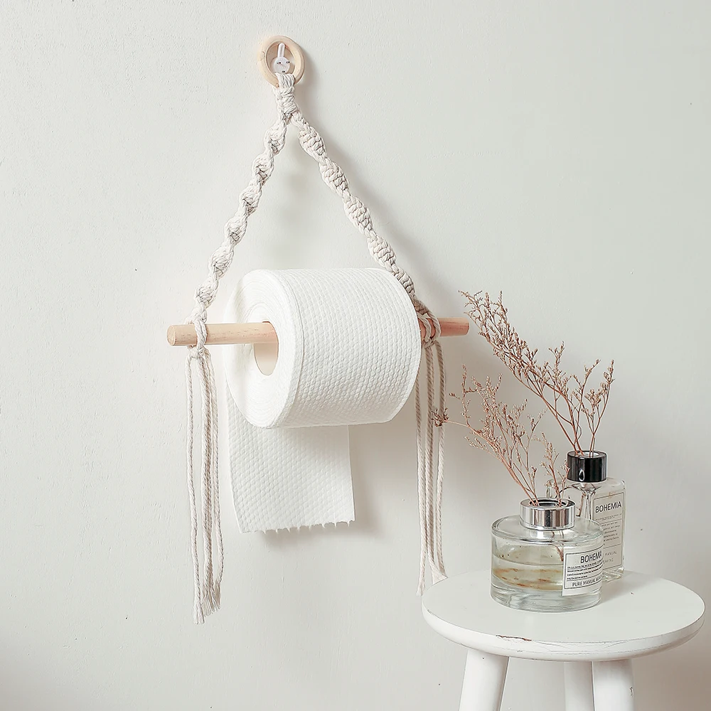 Настенный держатель для туалетной бумаги, винтажная вешалка для полотенец в стиле макраме, веревка в стиле бохо, держатель для туалетной бумаги, украшение для дома, отеля, ванной комнаты