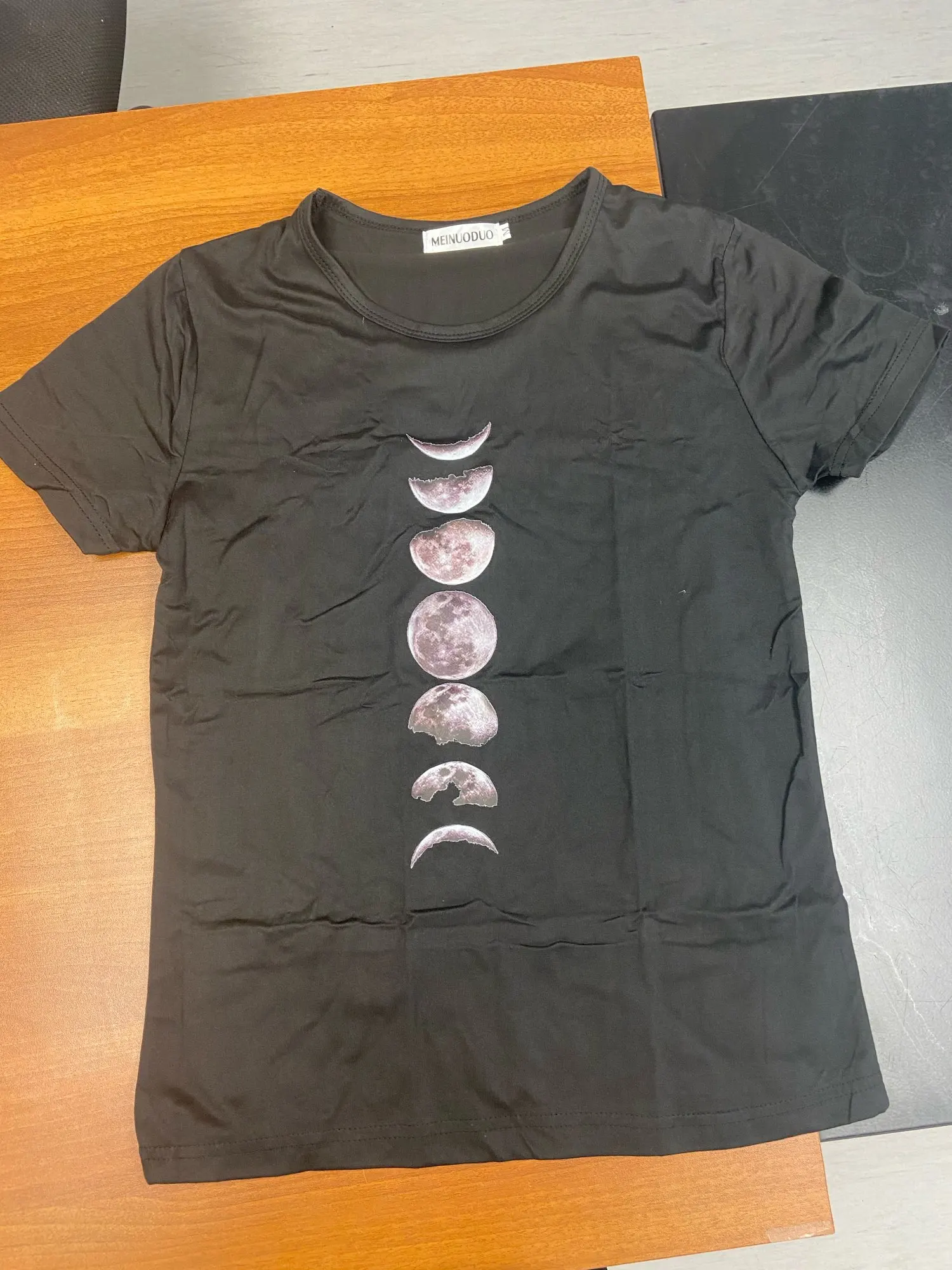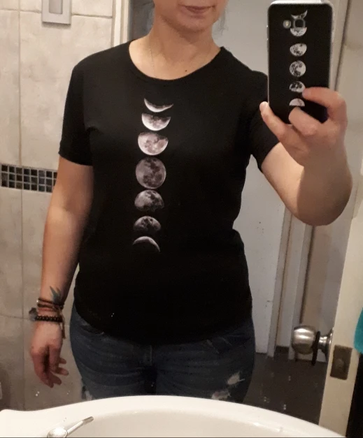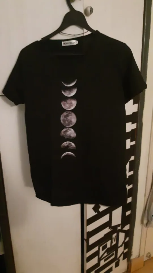 Хороший продукт по цене. На moons наклеивается наклейка, поэтому вы не можете мыть его в стиральной машине или гладить прямо. Вы должны гладить рубашку наизнанку, иначе наклейки потеряются. Размер правильный, материал хороший. Прошло некоторое время, чтобы прибыть, хотя я думаю, что это таможенная ошибка, а не продавец