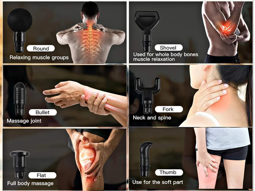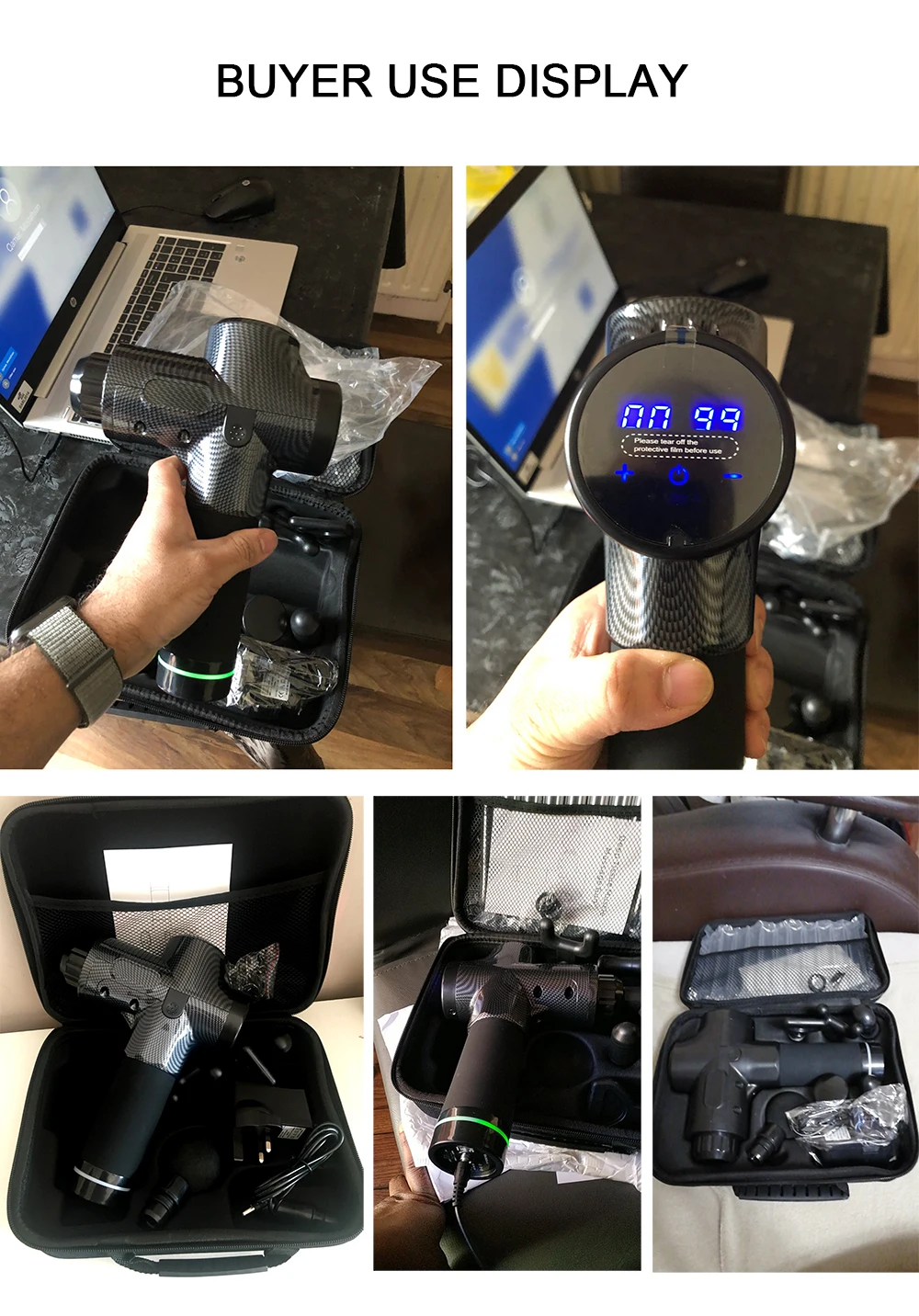 30 режима скорости: Выберите разные скорости в соответствии с группы мышц от 1200 до 3300 об./мин.6 массажных головок: предлагает четыре массажных головки для облегчения ноющих ног, спины, шеи и плеч и т. д.Сенсорный ЖК-дисплей и низкий уровень шума: шум менее 45 децибел и сенсорный ЖК-экран высокой четкостиПродолжительная батарея: 2400 мАч литий-ионная аккумуляторная батарея поддерживает длительное время работы от 6 до 10 часов