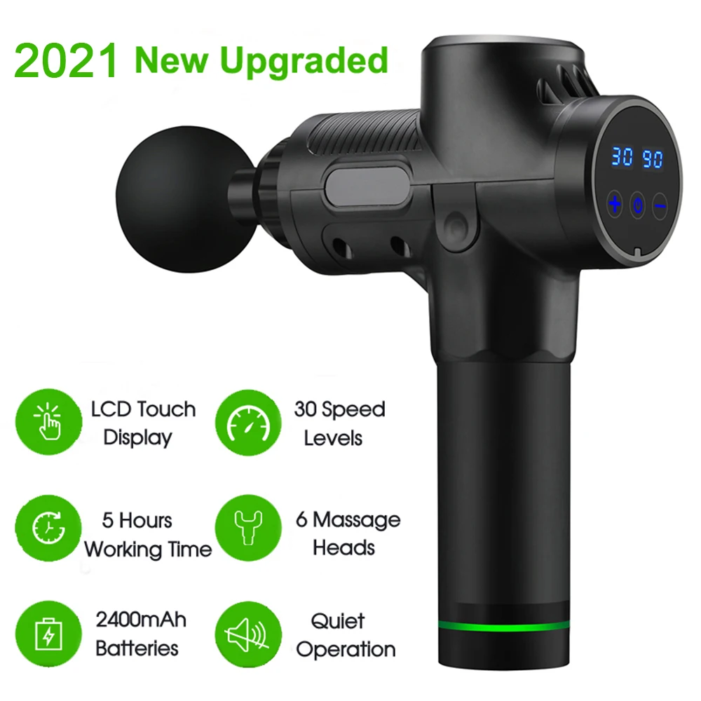 Массажный пистолет для глубоких тканей, ударный Массажер для мышц для облегчения боли, 30 скоростей, Электрический массажер для тела с сенсорным ЖК-дисплеем