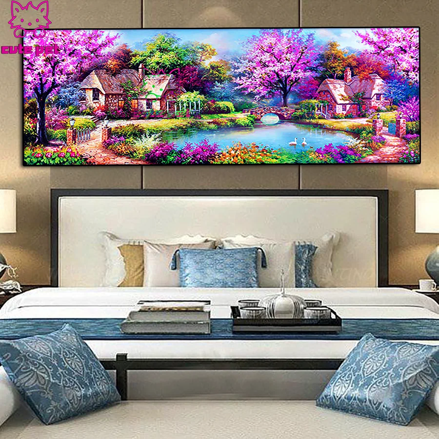 Алмазная живопись с полным заполнением DIY, пейзаж для сада, искусственный дом, вышивка крестиком, домашний декор, мозаика большого размера