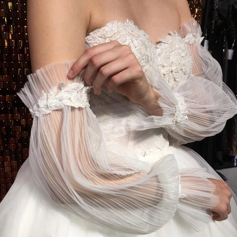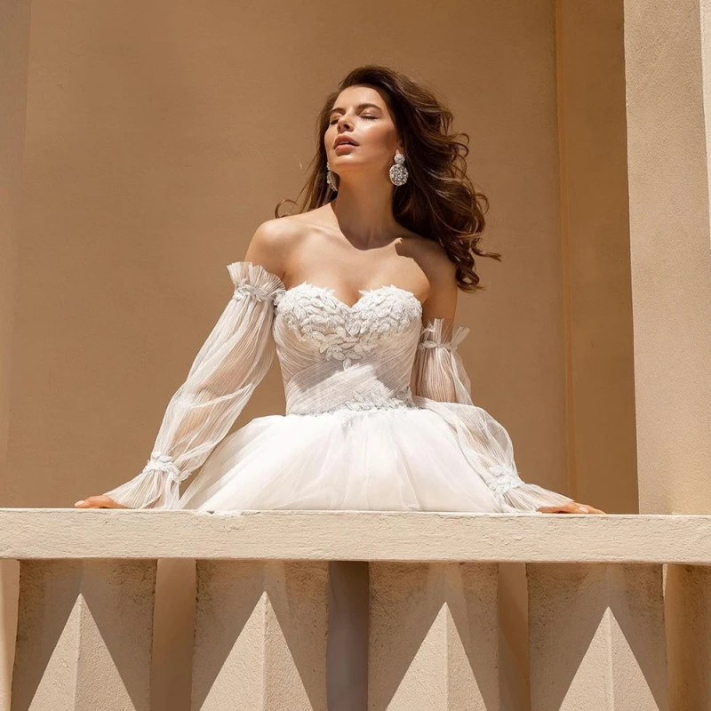 Бальное платье с открытыми плечами свадебное платье Милая Кружевная аппликация съемные из атласа с длинным рукавом тюлевые свадебные платья невесты платья