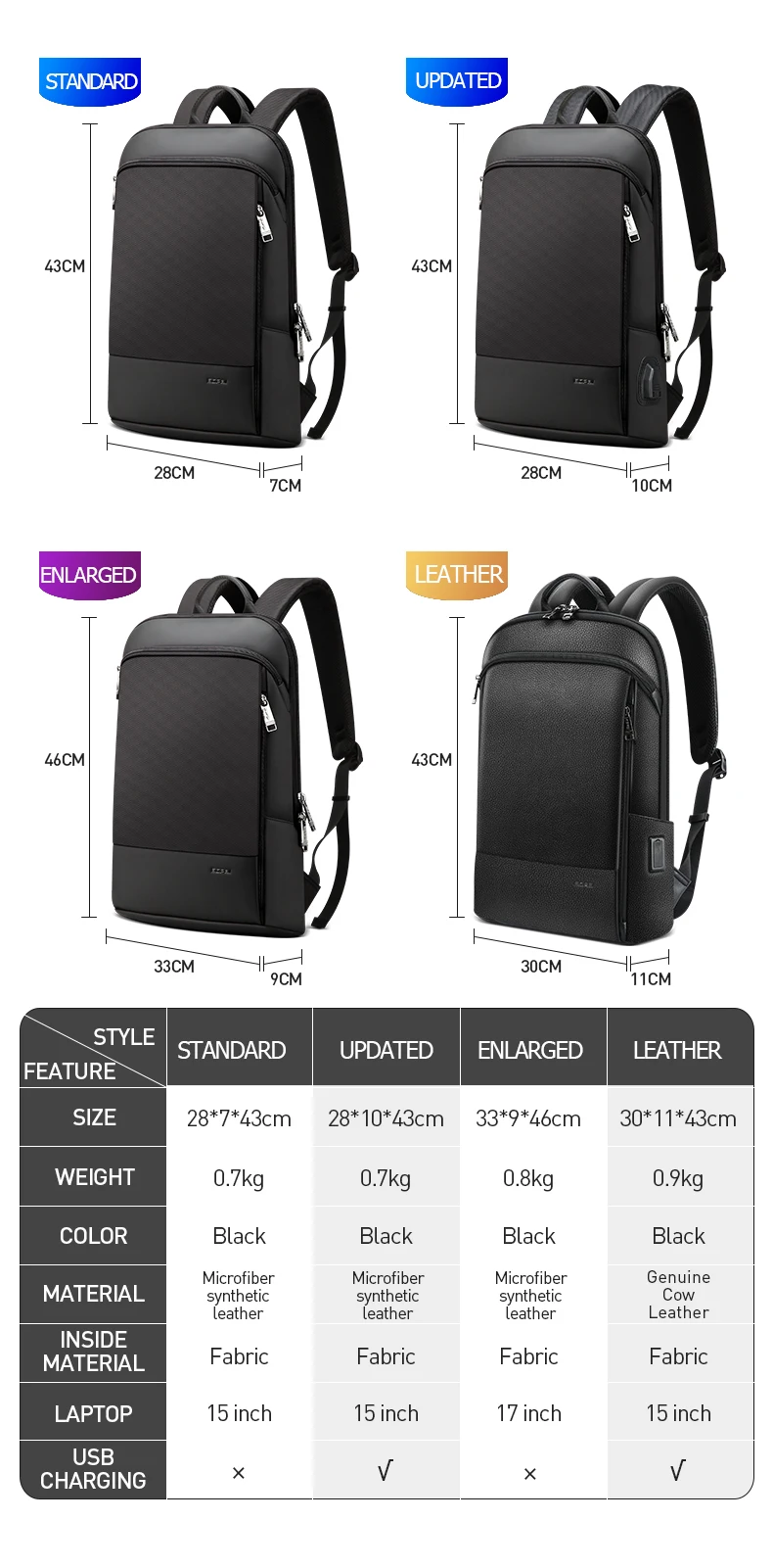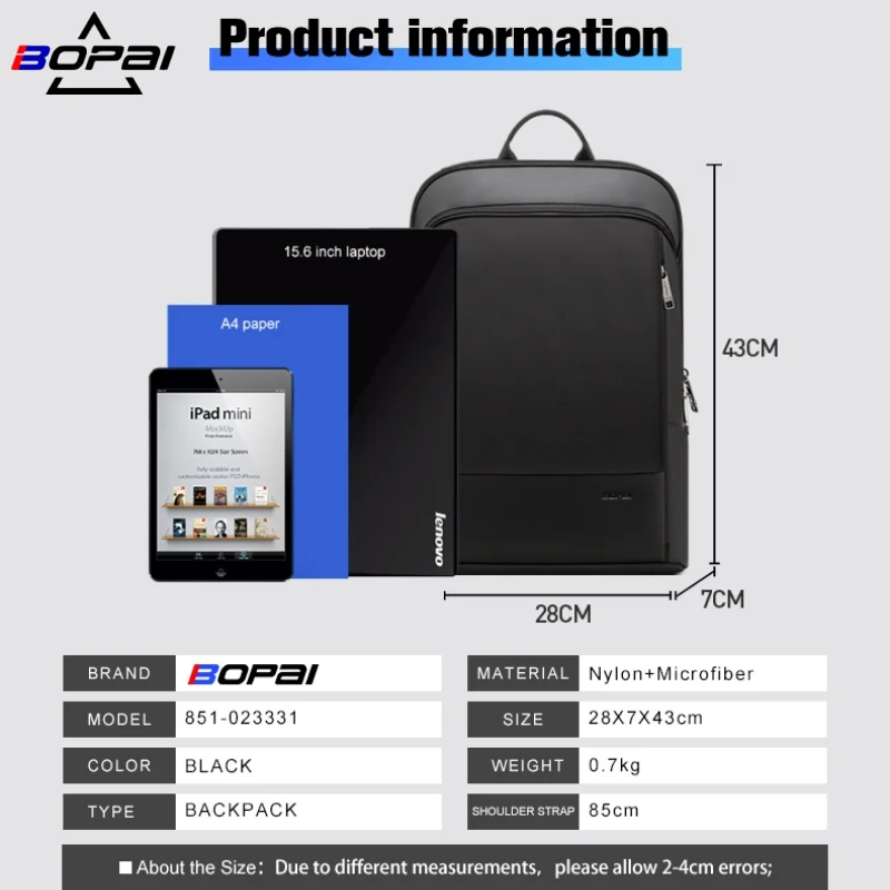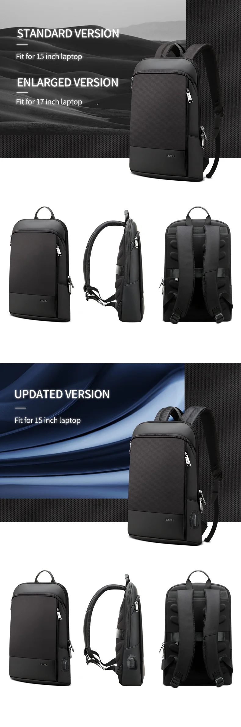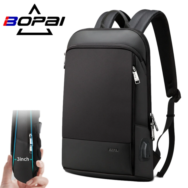 Деловой повседневный рюкзак унисекс BOPAI, тонкий черный рюкзак с защитой от кражи, для ноутбука 15,6 дюйма, для работы в офисе