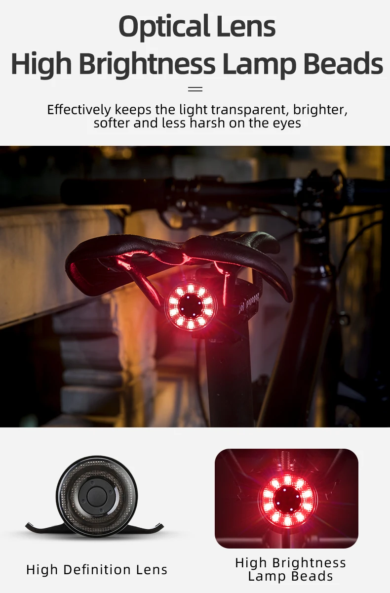 Велосипедный задний фонарь ROCKBROS, стоп-сигнал с датчиком, зарядс...