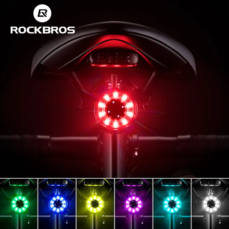 ROCKBROS задний фонарь для велосипеда с возможностью светильник зарядка через USB Безопасность Предупреждение Велоспорт светильник красочные задний фонарь для велосипеда с возможностью светильник велосипед задний светильник велосипед аксессуары