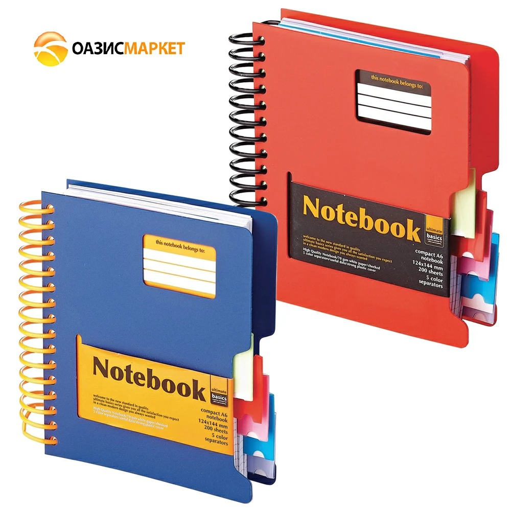 Блокнот (144х145 мм) А6, 200 л, спираль, обложка пластик, разделите...