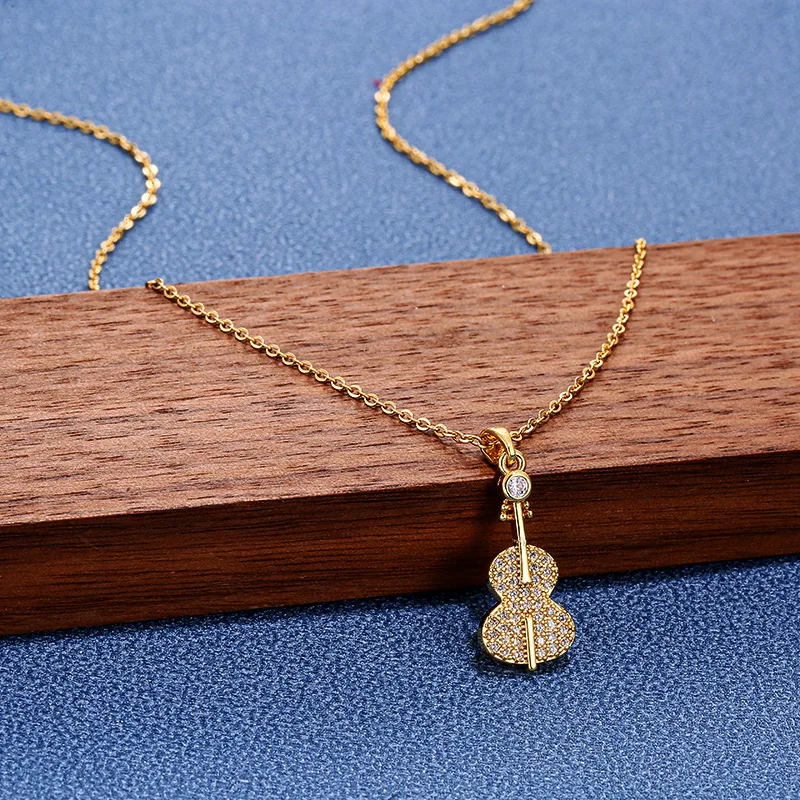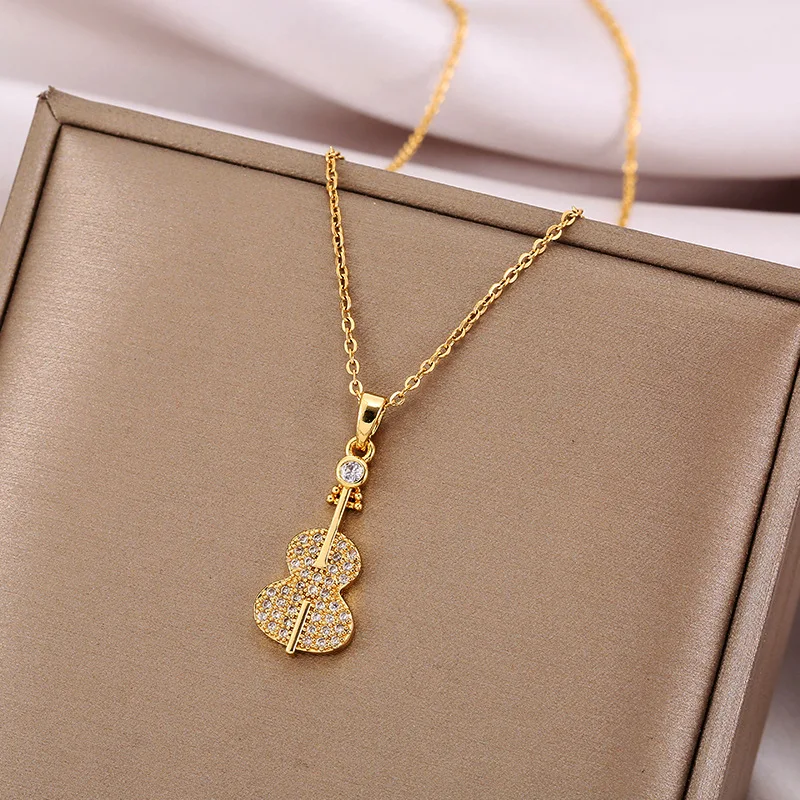 Ожерелье с подвеской в виде скрипки для женщин, ювелирные изделия 2021, милое ожерелье из титановой стали с золотым покрытием, роскошный чокер в японском и корейском стиле, оптовая продажа
