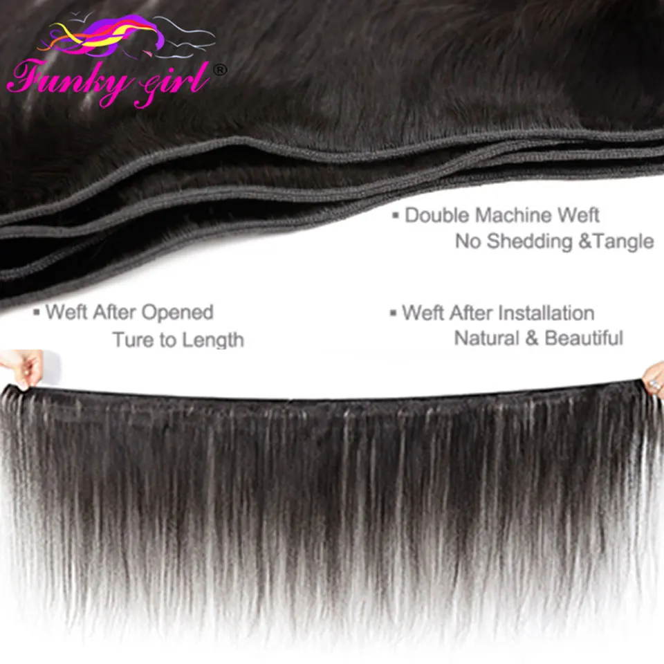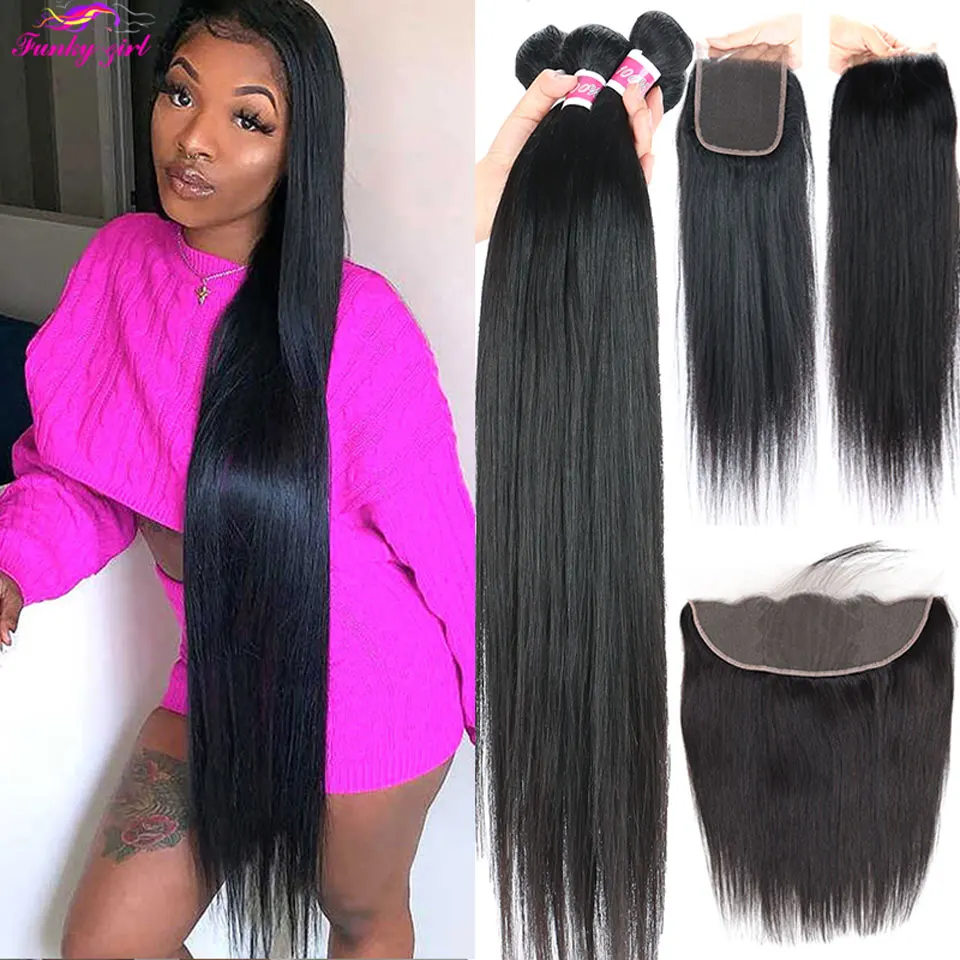 Пряди перуанских волос с фронтальной волнистыми волосами для девочек 30 дюймов, прямые человеческие волосы Реми 13x4, кружевная Фронтальная застежка пряди