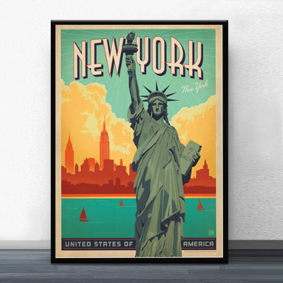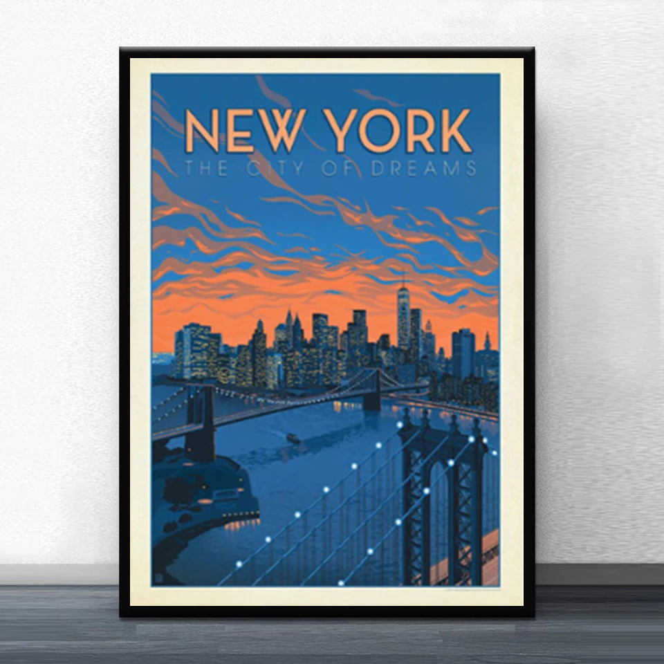 Нью-Йорк, Нидерланды, Амстердам, Франция, винтажные путешествия, города, пейзаж, холст, живопись, плакаты, настенное искусство, картины для домашнего декора