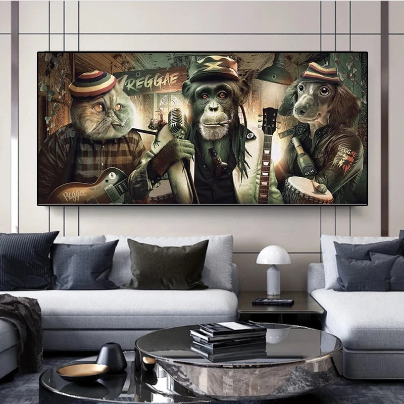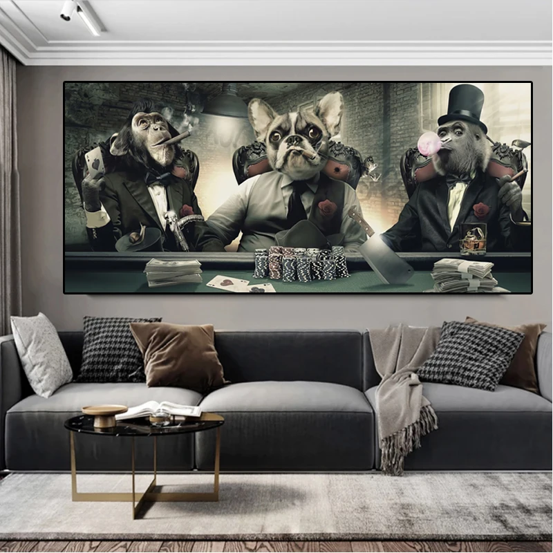 Абстрактная картина маслом с изображением животных, курение обезьяны и собаки, холст, печатные плакаты и принты, картина для домашнего декора