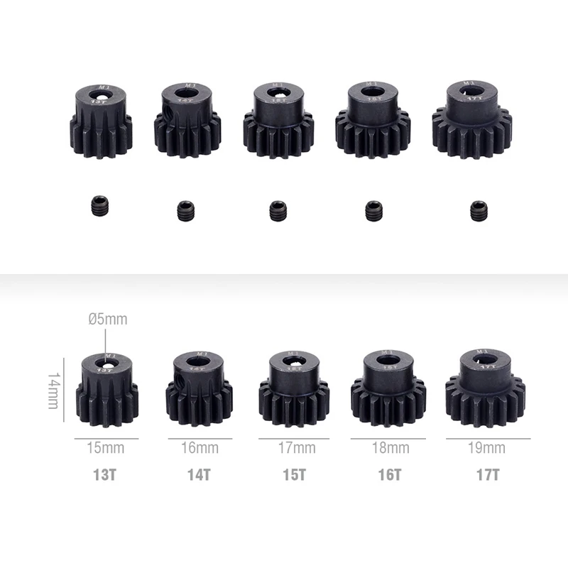 Металлический материал обеспечивает длительный срок службы, более прочный и износостойкий.Благодаря широким зубцам с толстой зубчатой передачей и глубоким зубчатым канавкам может выдерживать большее усилие, которое не так просто для зубов.Набор из 5 предметов дает вам больше выбора, чтобы помочь вам сделать лучшую производительность автомобиля RC.В M4 представляет наиболее продаваемые наборы винтовых (12,9 уровень) была добавляется к каждому сроку отправки ведущая шестерняПодходит для 1/8 RC автомобиля грузовика щеткой бесщеточный моторЭто хороший выбор для любителей автомобилей RC.Зубцы: 13T-17T/11T-15TВысота: 14 ммДиаметр наконечника13T: 15 мм14T: 16 мм15T: 17 мм16T: 18 мм17T: 19 мм/11T: 13 мм12T: 14 мм13T: 15 мм14T: 16 мм15T: 17 ммПодходящий диаметр вала: 5 ммВес изделия: около 82 гРазмер: около 2x1.5x1.5cmМатериал: металлЦвет: черныйПосылка:5 x M1 5 мм алюминиевые металлические моторные шестерниНабор винтов-1 шт.Только вышеуказанная посылка, другие товары не включены.Примечание: светильник и различные дисплеи могут привести к тому, что цвет товара на картинке немного отличается от реального. Допускается погрешность в измерениях +/- 1-3 см.