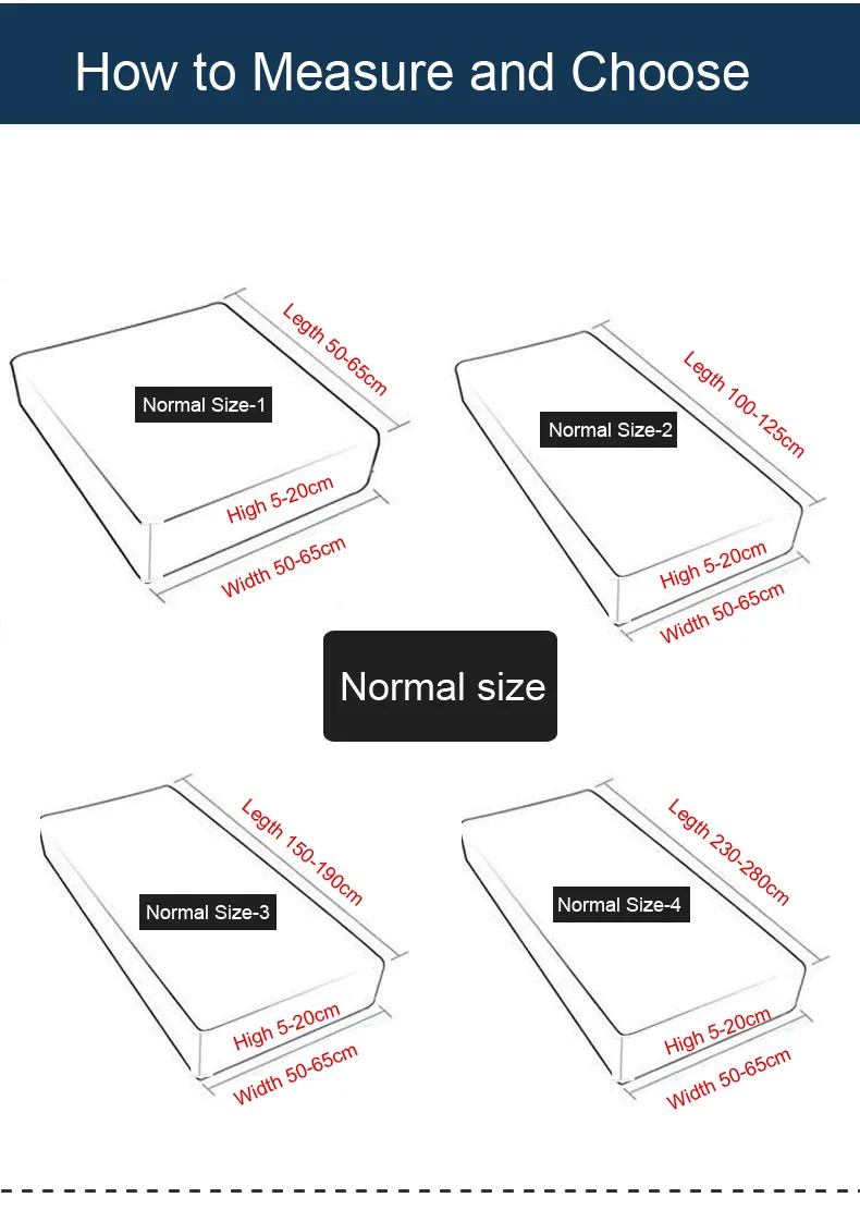 1. Изготовлен из прочного и мягкого полиэстера и спандекса трикотажной ткани, богатая и текстурированная, жаккардовая плотная удобная ткань и мягкая на ощупь. Водоотталкивающие чехлы для диванов с полным покрытием обеспечивают полную защиту вашего дивана от влажных пятен, разливов и любых несчастных случаев, особенно для домов с детьми, собаками и кошками. Пожалуйста, протрите жидкости капель на мебельном покрытии тряпкой или губкой сразу же, когда жидкости непреднамеренно прольются на чехол, тогда ваш диван не промокает2. Легко надевать и снимать, встроенные эластичные углы помогут сохранить чехол на месте3. Высокая эластичность и мастерство обеспечивают максимальное прилегание для большинства стилей подушки для дивана, придадут вашему дивану очаровательный новый видОбычный размер-1: длина: 50-65 см, ширина: 50-65 см, толщина: 5-20 смОбычный размер-2: длина: 100-125 см, ширина: 50-65 см Толщина: 5-20 смОбычный размер-3: Длина: 150-190 см, ширина: 50-65 см, толщина: 5-20 смОбычный размер-4: длина: 230-280 см, ширина: 50-65 см Толщина: 5-20 смРазмер для увеличения-1: длина: 65-95 см, ширина: 65-95 см, толщина: 5-20 смРазмер для увеличения-2: длина: 95-135 см, ширина: 65-95 см, толщина: 5-20 смРазмер для увеличения-3: Длина: 135-165 см, ширина: 65-95 см, толщина: 5-20 смРазмер для увеличения-4: длина: 165-200 см, ширина: 65-95 см, толщина: 5-20 смРазмер для увеличения-5: длина: 160-190 см, ширина: 90-110 см, толщина: 5-20 смНапоминание:Чехол для дивана продается как цельный, а не как набор. Вам нужно несколько, чтобы купить несколько. Изображение дивана является результатом сочетания разных размеров.