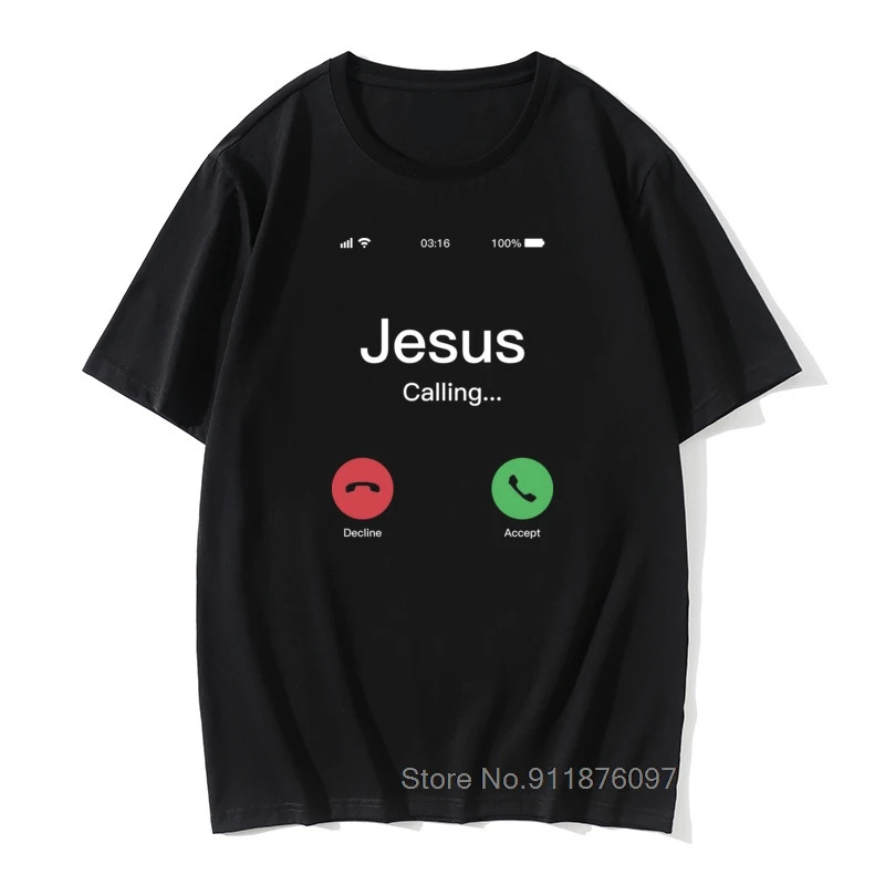 Мужская футболка с коротким рукавом, круглым вырезом и принтом Иисус называет