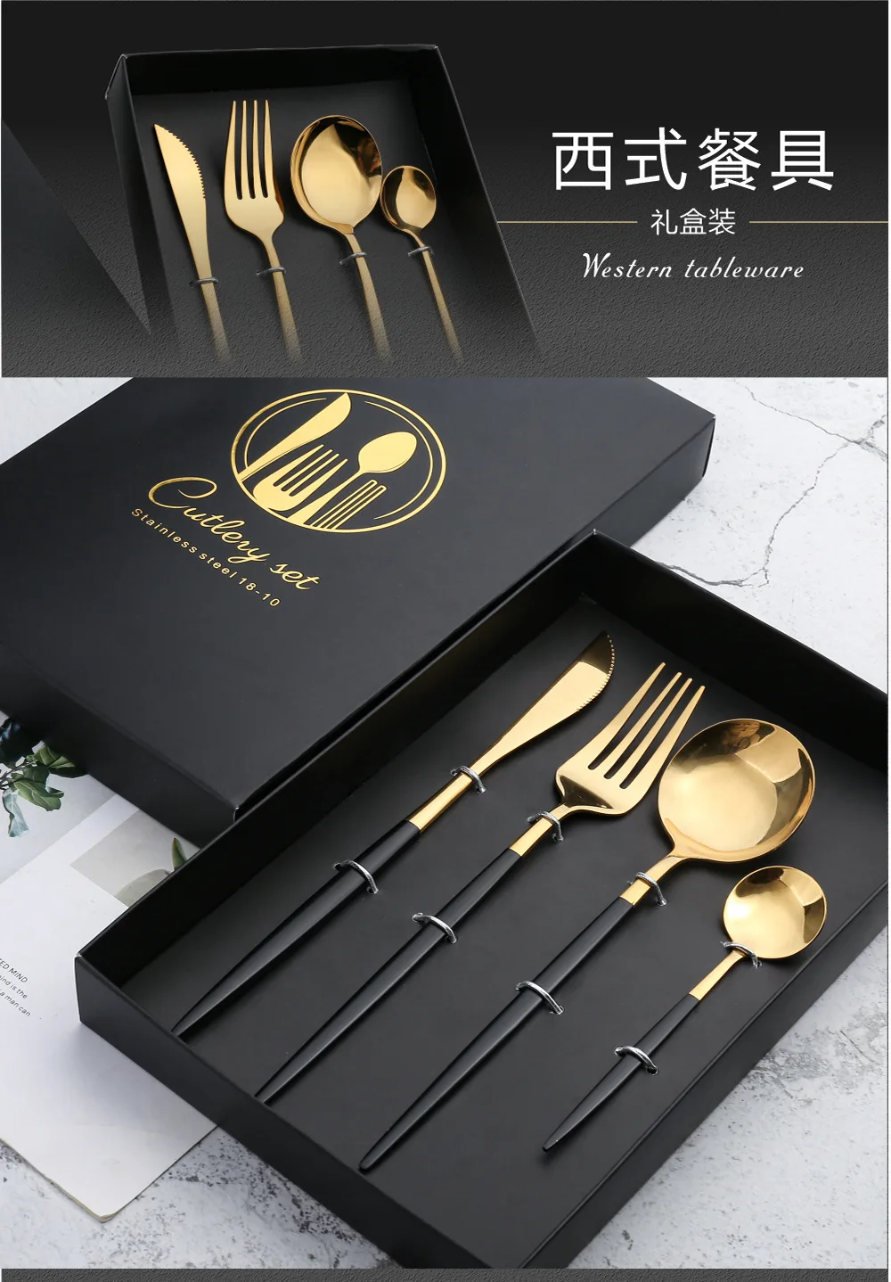 304 Нержавеющаясталь Золотой набор столовых приборов черный роскошн...