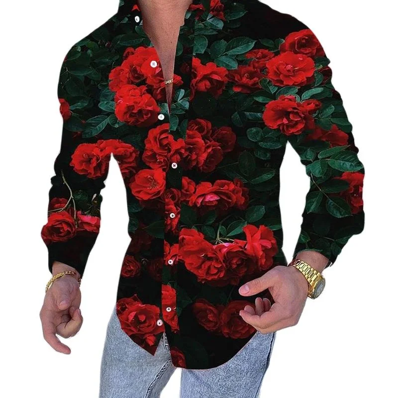Рубашка мужская с цветочным принтом, модная сорочка с длинным рукав...