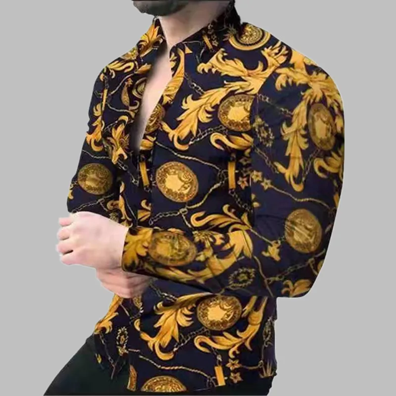 Мужская однобортная рубашка с длинным рукавом, с принтом
