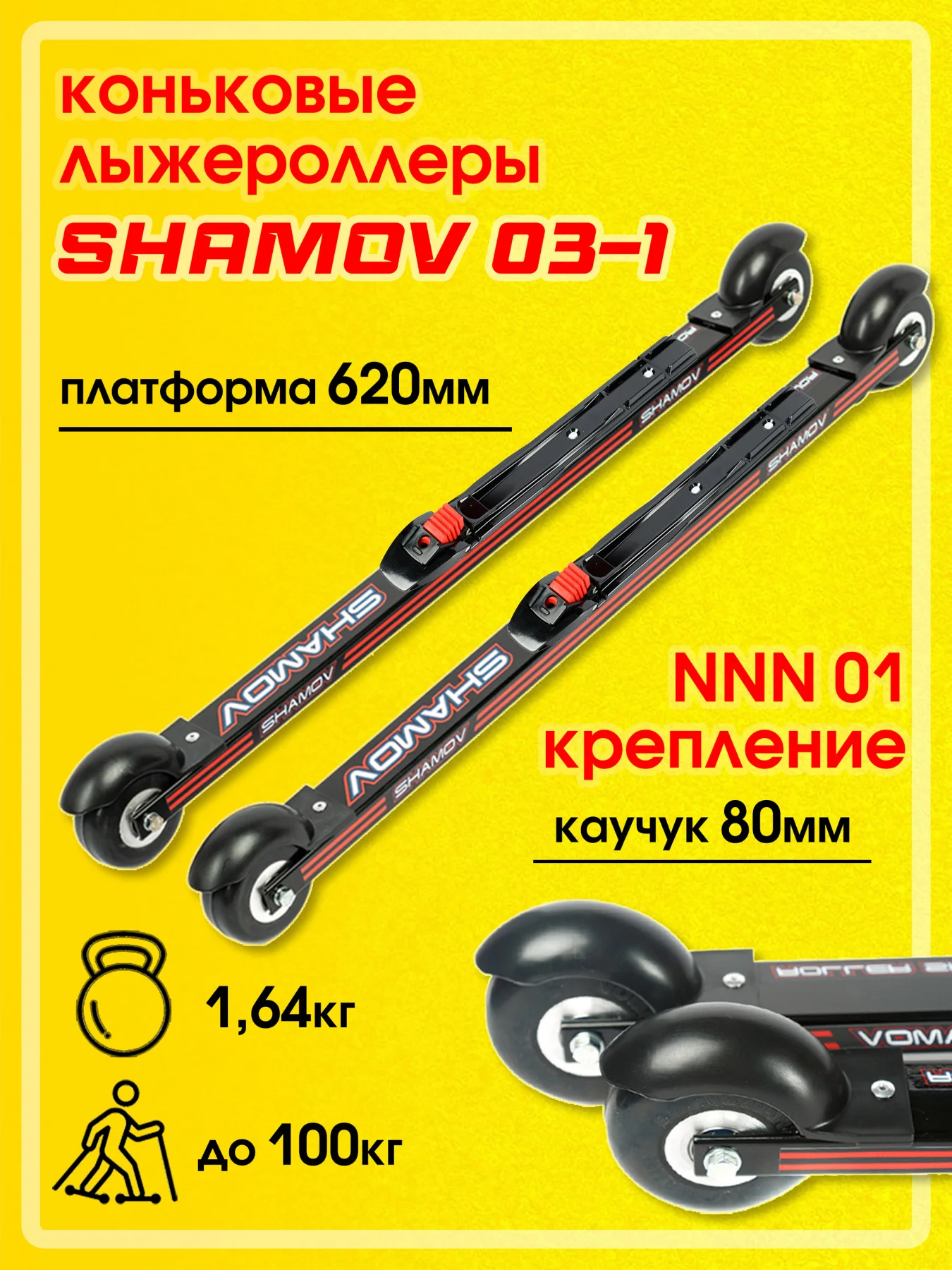 Комплект лыжероллеров Shamov 03-1,для конькового хода, с креплениями Shamov N01 системы NNNЛыжи на колесахЛетние лыжи