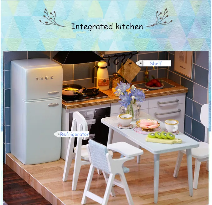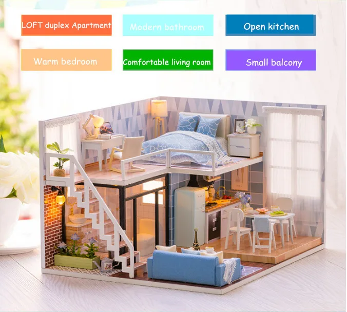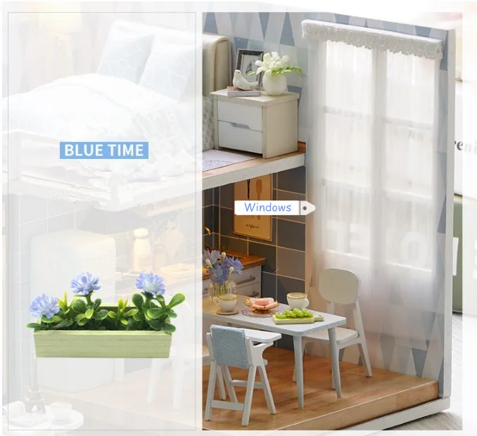 Набор для самостоятельной сборки Миниатюрный Кукольный дом, модель мебели, деревянный кукольный домик для детей, подарок на день рождения, милый дом Blue Times