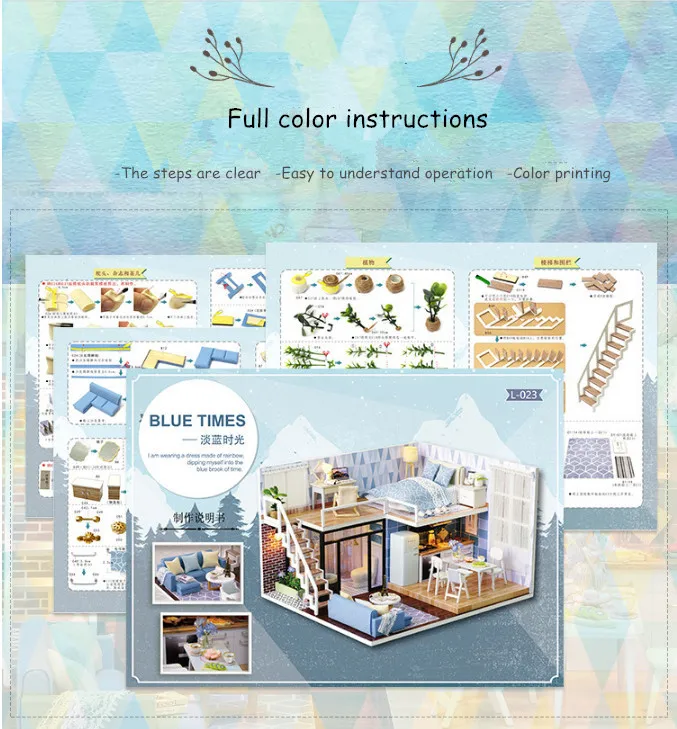 1. Клей/инструменты/аккумулятор не входят в комплект поставки2. Необходимо подготовить инструменты и вспомогательные материалы: ножницы, ножи, дырокол, прецизионный пинцет, отвертку, линейку, спиртовой клей, латекс.3. Как показано на фото, внешний вид кукольного домика завершен, вы получите посылка ЛКУ из материала изготовления кукольного домика, он нужен вам в соответствии с рисунками, сделанными вручную.