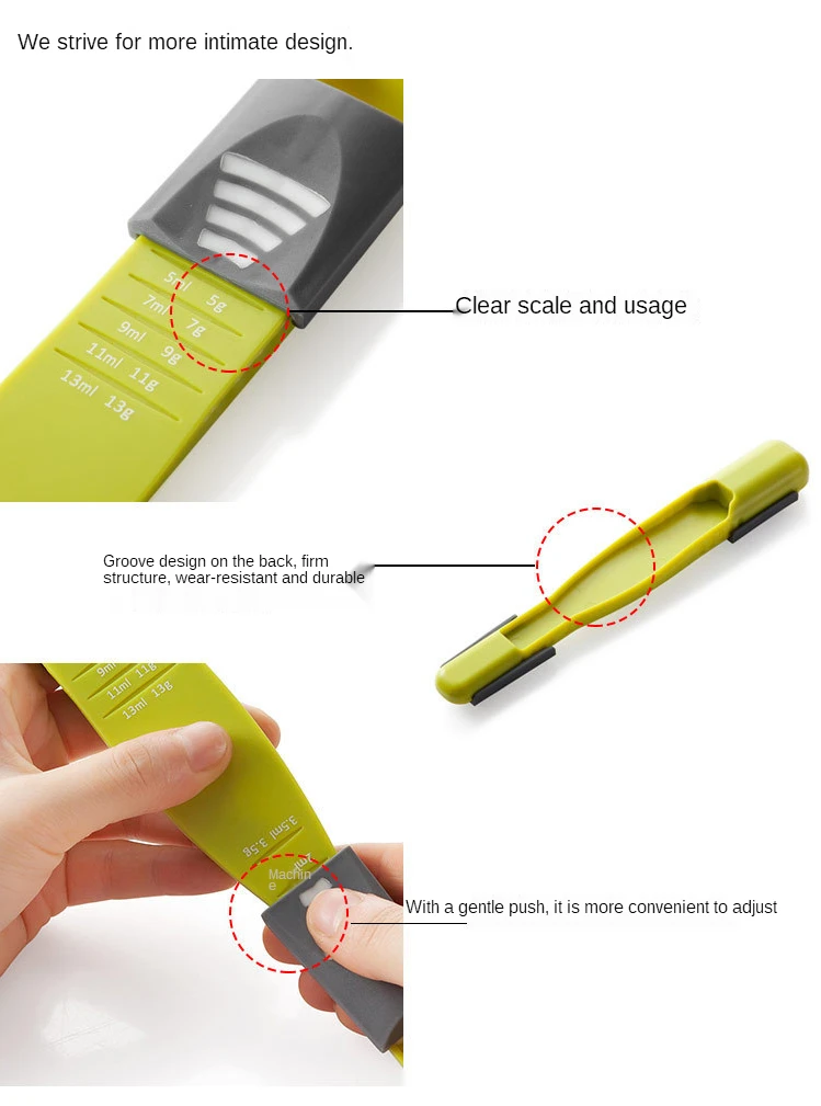 1 шт., двухсторонние мерные ложки, Пластиковые регулируемые мерные ...