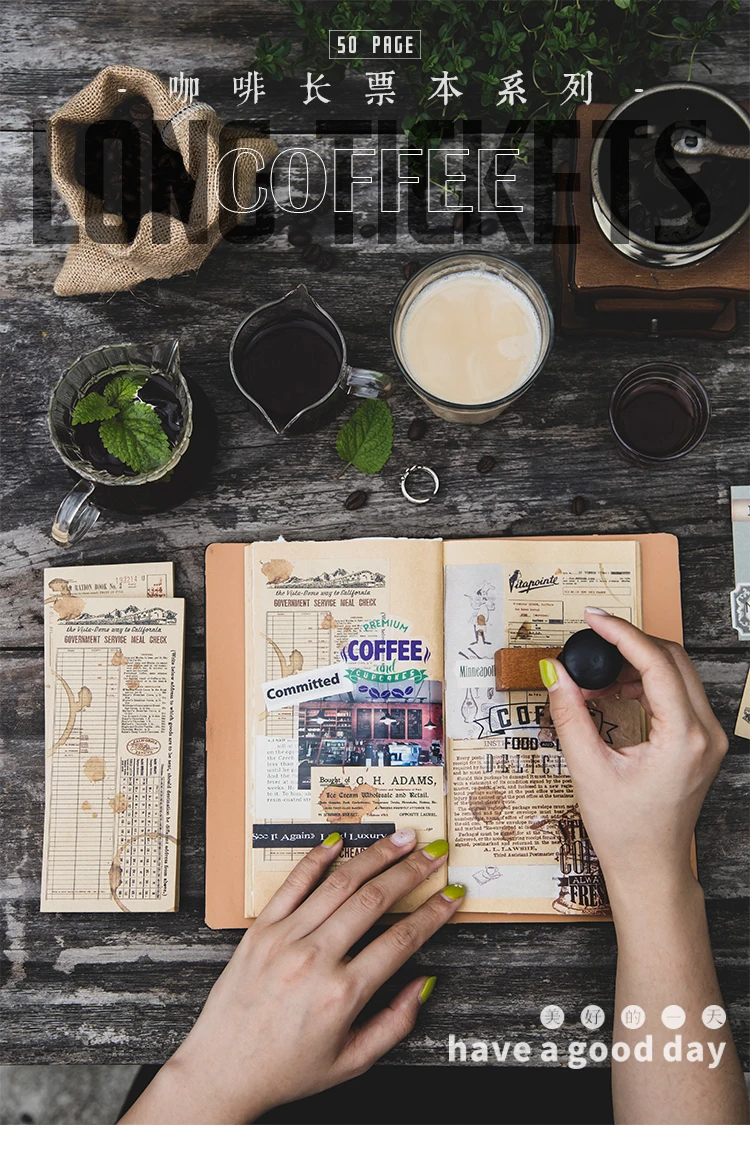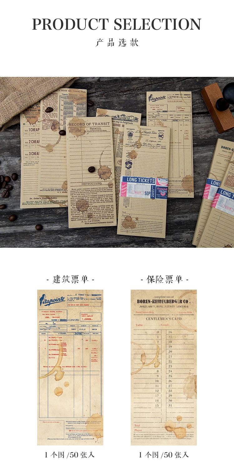 Dimi 50 листов кофейных длинных билетов, крафт-бумага, винтажный блокнот для записей, альбом для скрапбукинга, база для журналов, коллаж, декоративная бумага из материала сделай сам